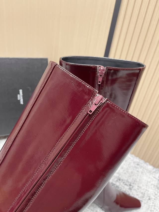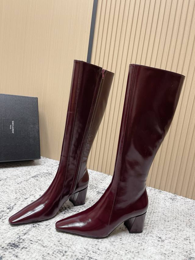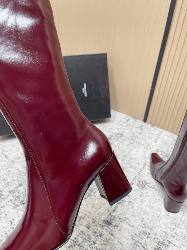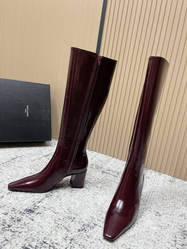 顶级版本: Saint Laurent 圣罗兰秋冬新款 侧拉链 高跟 高靴 整个鞋非常的简约大气 小方头更加的精致时髦可以看到我们靴子侧面是按照人体腿型设计出来