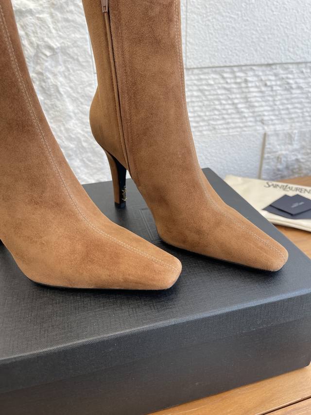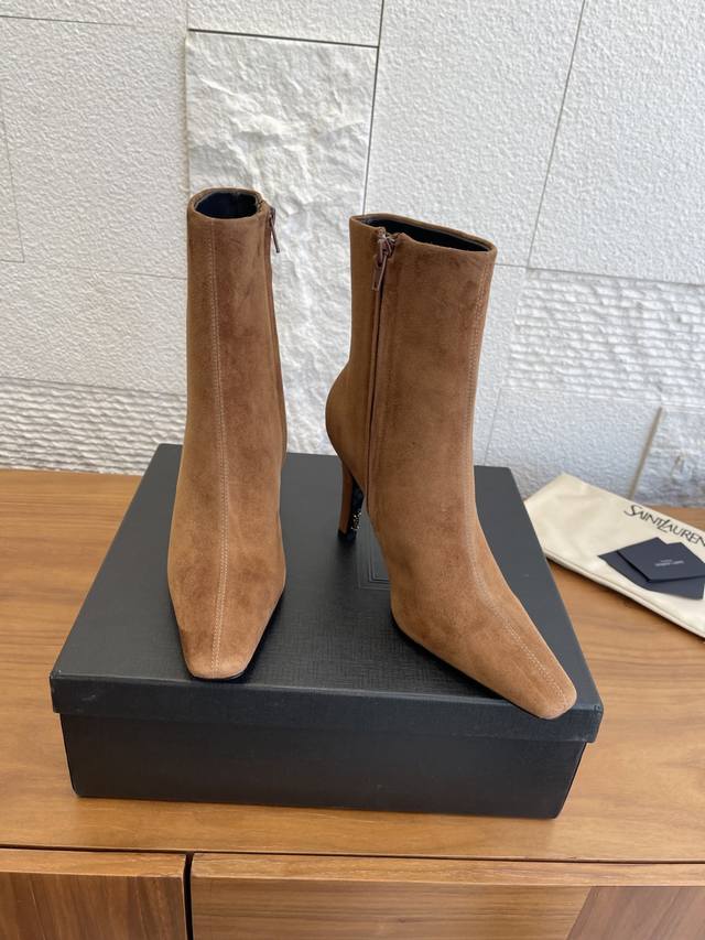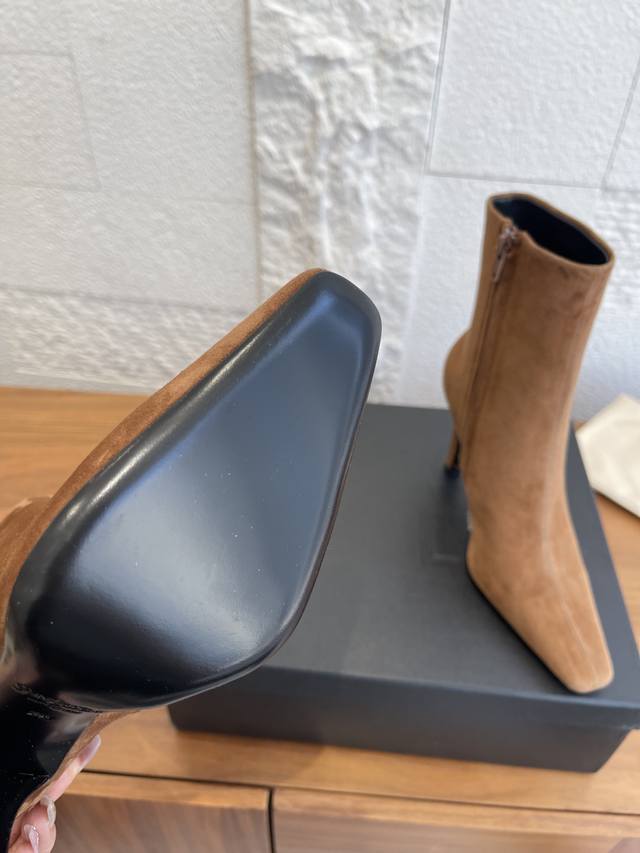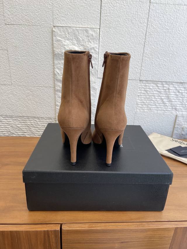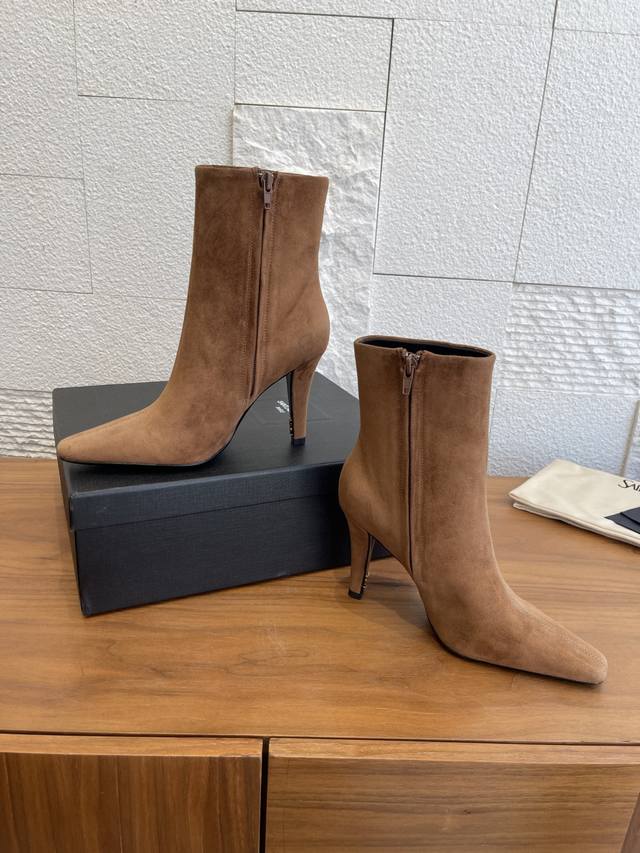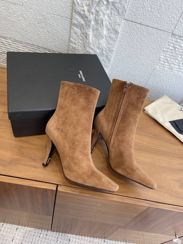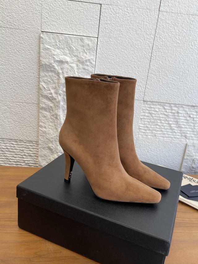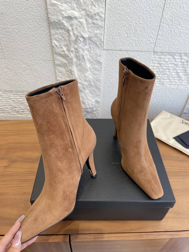 顶级版本: DDD Saint Laurent 圣罗兰 25Ss 秋冬新款 尖头 侧拉链 高粗跟 及踝靴 短靴 DDD Saint Laurent 这双及踝靴靴,搭配方形尖鞋头,侧面拉链开合设计,锥形粗跟设计,内侧饰以Le Cassandre。上脚非常秀气好看不挑人,拉长腿型,适合各种场合搭配,秋冬穿搭必备单品! DDD 面料: 进口小牛皮 麂皮 DDD 内里 垫脚: 进口羊皮 DDD 大底: 意大利进口真皮大底 DDD Size: 35-41 40 41定做不退换 DDD