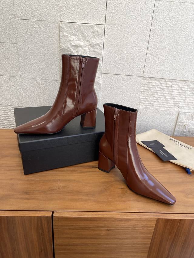 顶级版本: Saint Laurent 圣罗兰 25Ss 秋冬新款 方头 侧拉链 高跟 短靴 Saint Laurent 这双及膝踝靴,搭配方形尖鞋头,侧面拉链