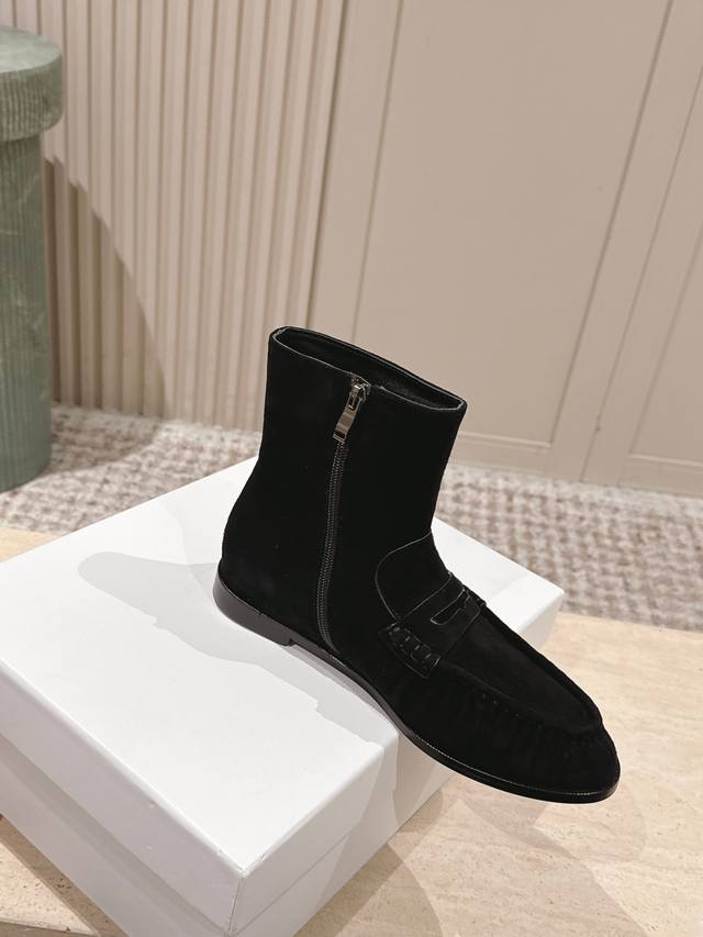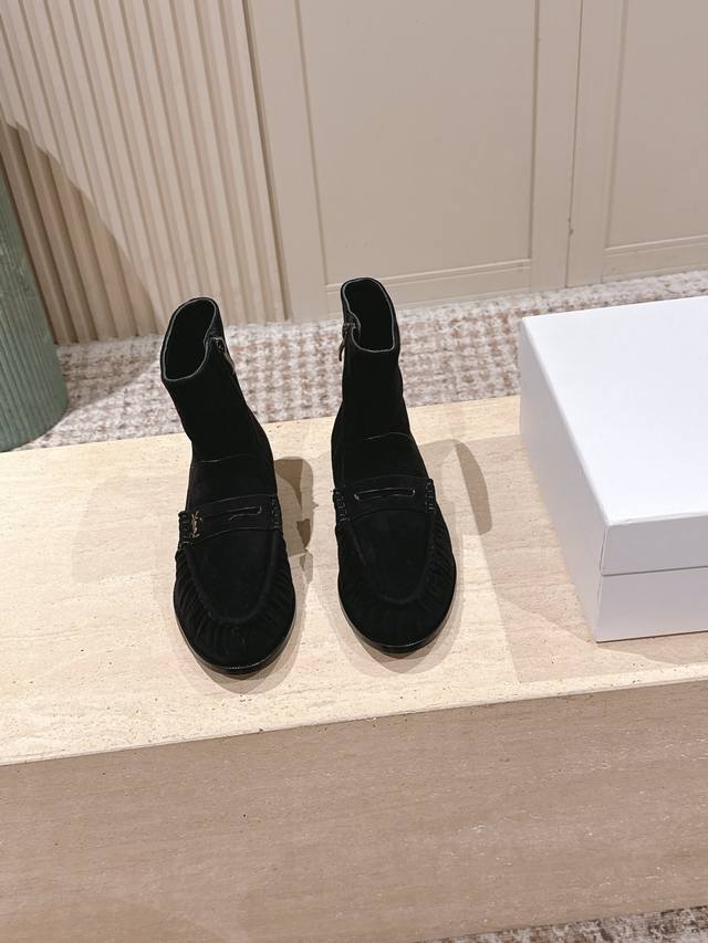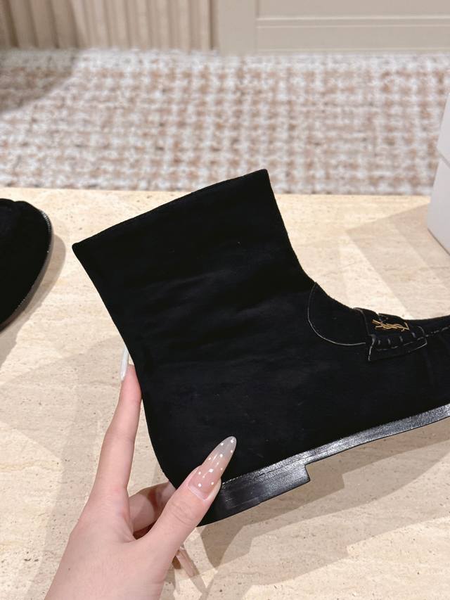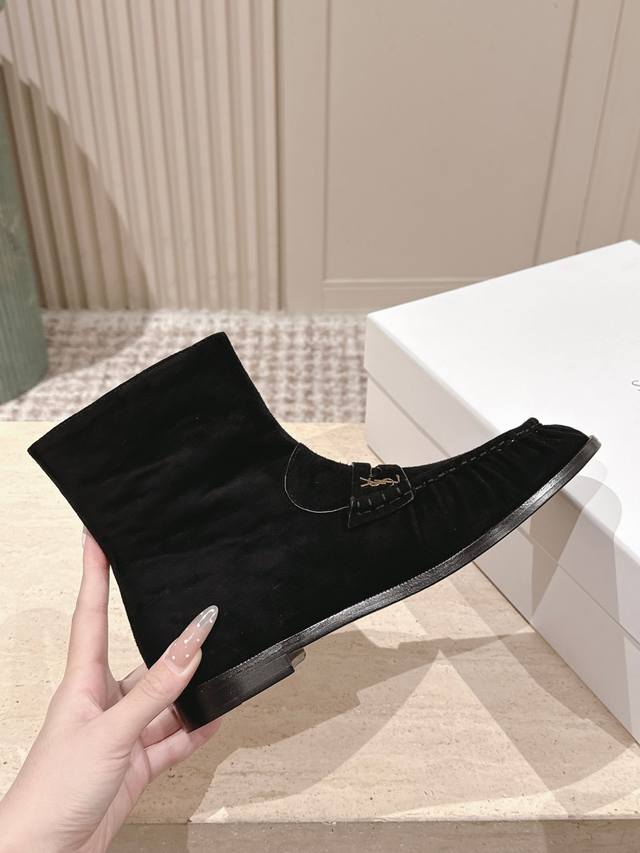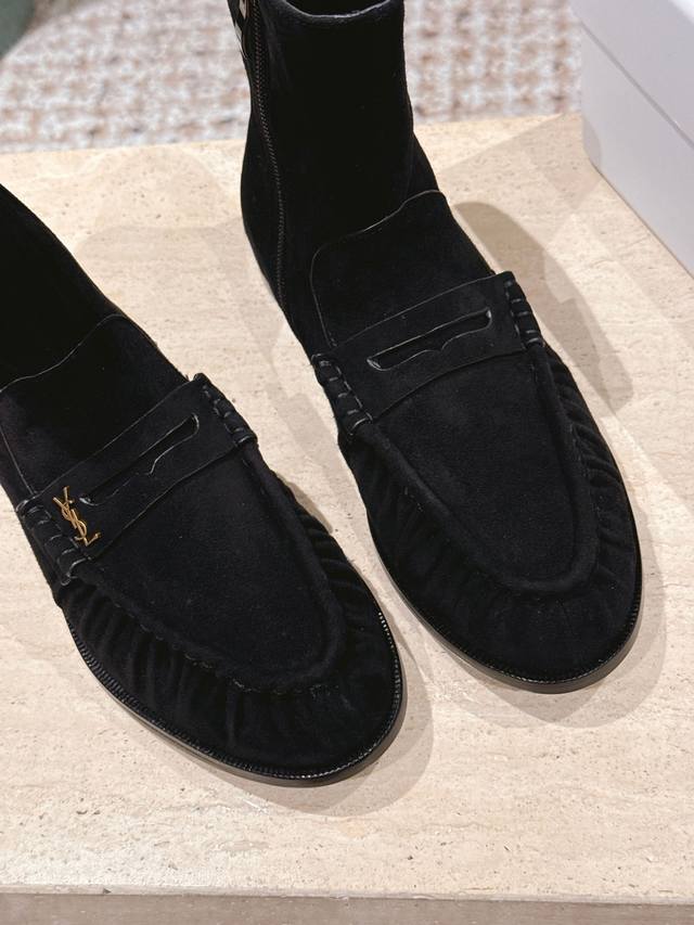 顶级版本: : Saint Lauren*Ysl圣罗兰25Wf新品 DDD Ysl字母褶皱边乐福短靴 DDD 当乐福慵懒基因邂逅短靴的利落轮廓 DDD 它为秋冬造型注入毫不费力的时髦感。 DDD 鞋面的自然褶皱是点睛之笔, DDD 随步履流转的肌理如同随性勾勒的线条 DDD 既呼应了秋冬流行的松弛美学 DDD 又以细腻质感消解了靴履的厚重感 DDD 标志性金色Ysl字母徽标点缀鞋身 DDD 金属的冷冽光泽与褶皱的柔和肌理, DDD 将品牌半个多世纪的优雅底蕴凝于方寸之间 DDD 无论是搭配西装裤演绎职场干