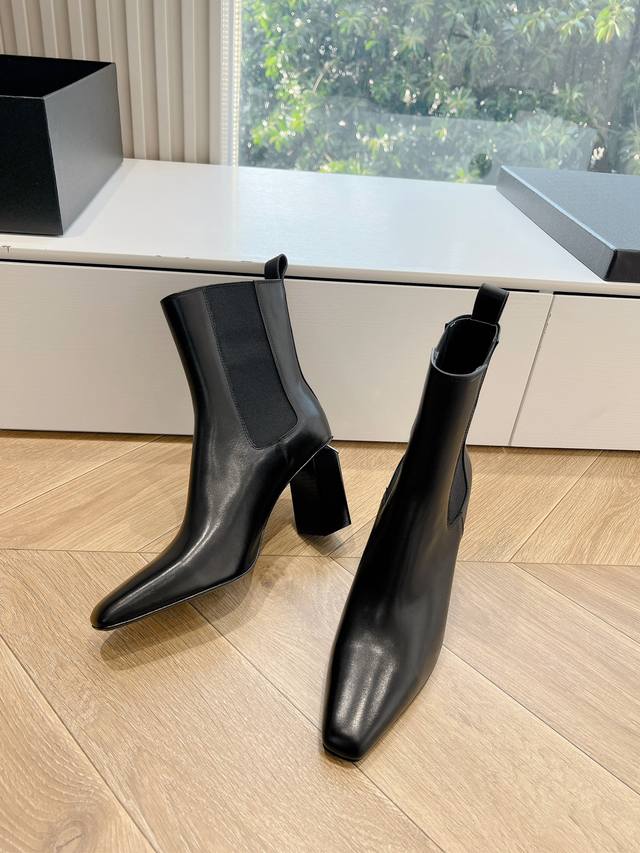 G085顶级品质Saint Laurent 圣罗兰切尔西短靴裸靴高跟鞋 Ysl姐姐的美丽尤物高跟鞋 又是人间圣罗兰 Rose同款的小方头...