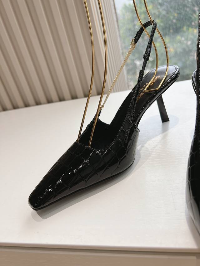 G085顶级品质Saint Laurent 圣罗兰Lee金属钻链条高跟鞋 Ysl姐姐的美丽尤物高跟鞋 又是人间圣罗兰 Rose同款的小方头 高跟鞋化很好修饰脚型