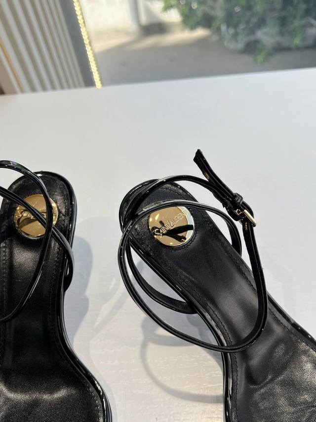 G085G988春季2025新款顶级品质Saint Laurent 圣罗兰Lee玛丽珍高跟凉鞋 Ysl姐姐的美丽尤物高跟鞋 又是人间圣罗兰 Rose同款的小方头 高跟鞋化很好修饰脚型,奢华金属链 这几年Slp是在高跟鞋越来越懂女人了 的尴尬设计印象Ysl绝美高跟鞋 鞋面:进口漆皮 鞋底:真皮大底 跟高约:7Cm 尺码35-39 40,41、定制不退不换