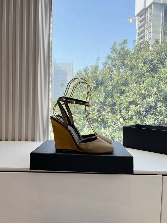 / G288顶级品质Saint Laurent 圣罗兰坡跟鱼嘴凉鞋Lee金属钻链条尖头高跟鞋Ysl姐姐的美丽尤物高跟鞋 又是人间圣罗兰 Rose同款的高跟鞋化很好修