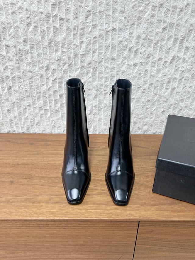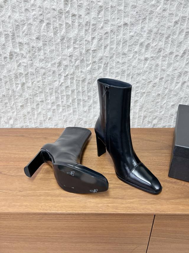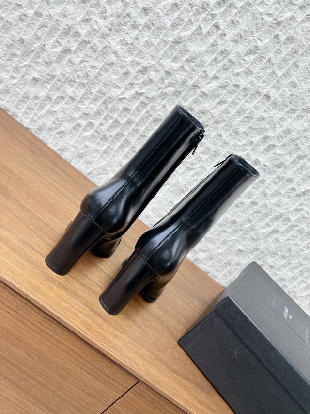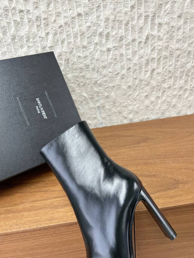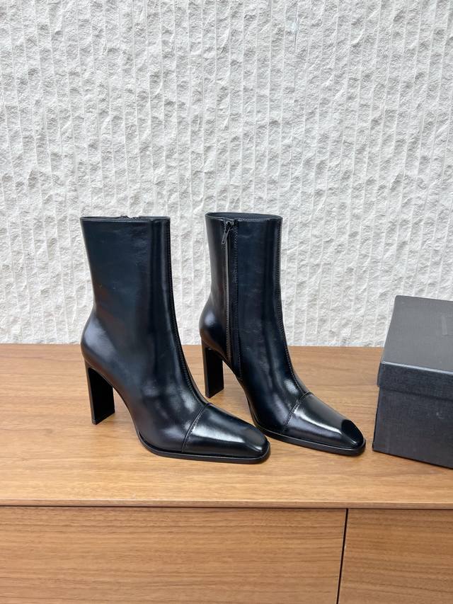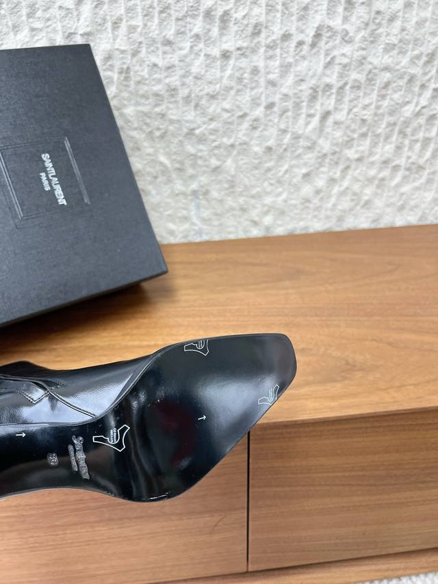 G731 Saint Laurent 圣罗兰 25Ss秋冬新款 DDD 侧拉链 高跟短靴 DDD 及踝靴,搭配方形尖鞋头和锥形粗跟,内侧饰以Le Cassandre,侧面拉链开合设计。 DDD 整个鞋非常的简约大气~ DDD 小方头更加的精致时髦可以看到我们靴子侧面是按照人体腿型设计出来的弧度~ DDD 上脚非常秀气好看不挑人~ DDD 拉长腿型~适合各种场合搭配~秋冬穿搭必备单品! DDD 鞋面:采用原版进口牛皮 DDD 内里垫脚:羊皮 DDD 跟高:9.5Cm DDD 鞋底:原版定制意大利真皮大底 D