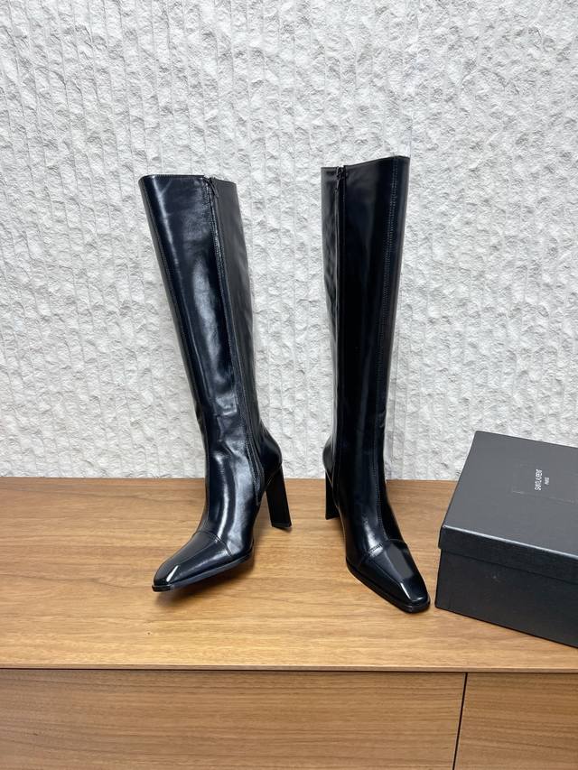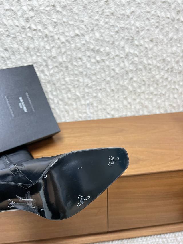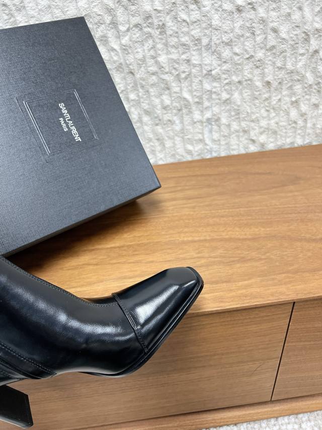 G731 Saint Laurent 圣罗兰 25Ss秋冬新款 DDD 侧拉链 高跟长靴 DDD 及踝靴,搭配方形尖鞋头和锥形粗跟,内侧饰以Le Cassandre,侧面拉链开合设计。 DDD 整个鞋非常的简约大气~ DDD 小方头更加的精致时髦可以看到我们靴子侧面是按照人体腿型设计出来的弧度~ DDD 上脚非常秀气好看不挑人~ DDD 拉长腿型~适合各种场合搭配~秋冬穿搭必备单品! DDD 鞋面:采用原版进口牛皮 DDD 内里垫脚:羊皮 DDD 跟高:9.5Cm DDD 鞋底:原版定制意大利真皮大底 D