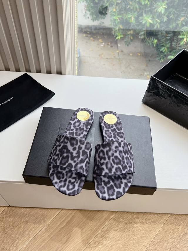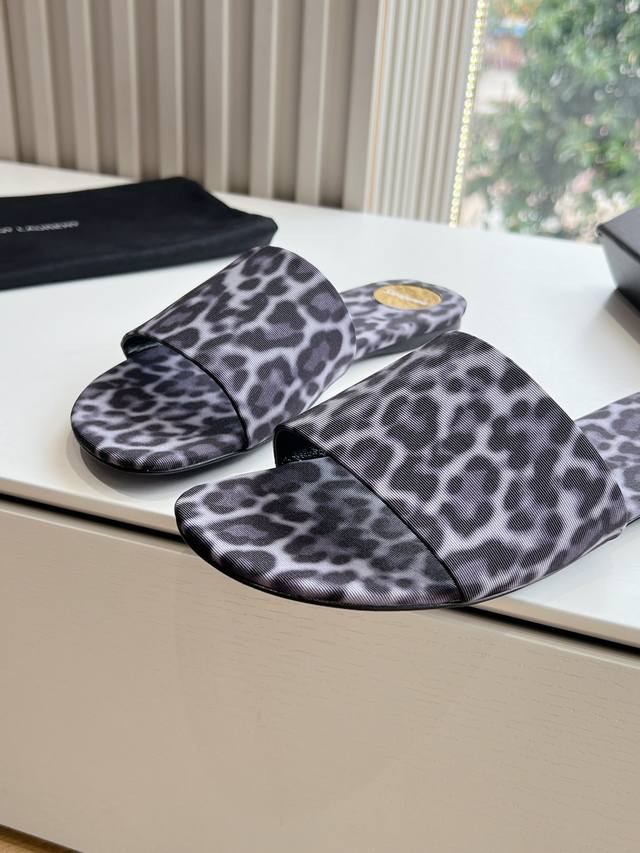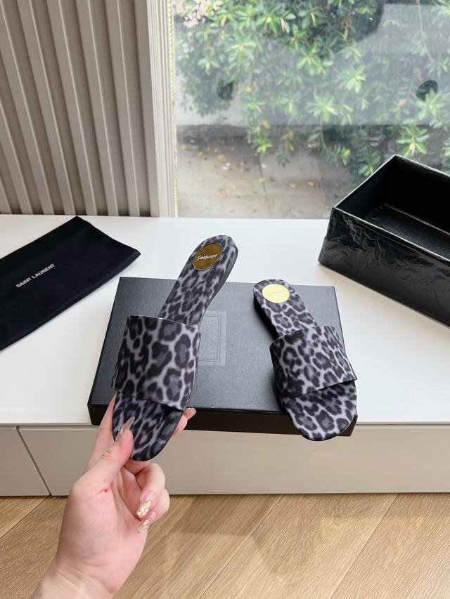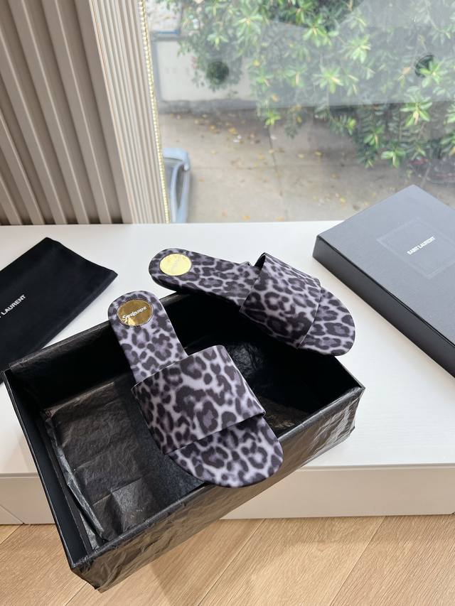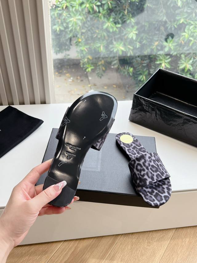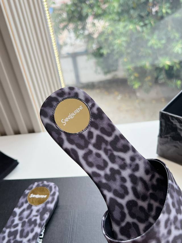 / G887 Saint Laurent圣罗兰巴黎秀同步更新 豹纹拖鞋真的太好看啦 Saint Laurent 圣罗兰拖鞋木纹鞋跟真的充分突显利落极简平底拖鞋 面料