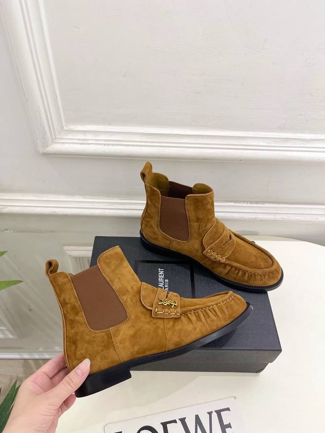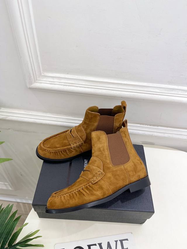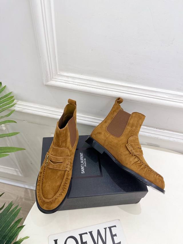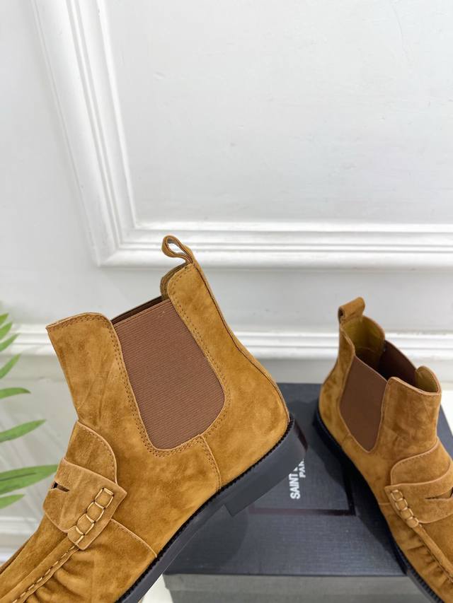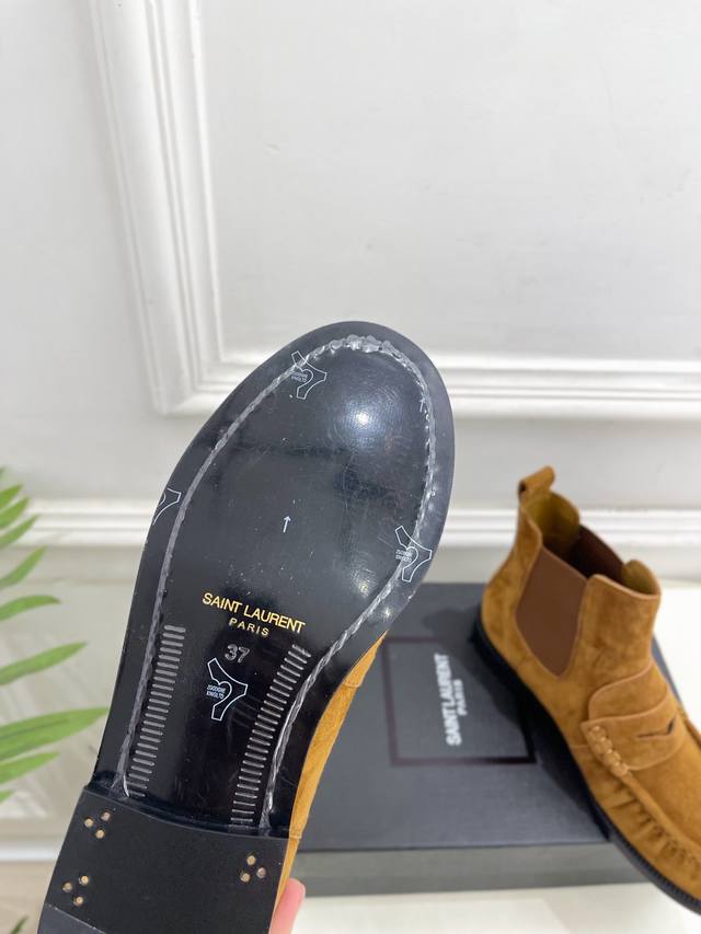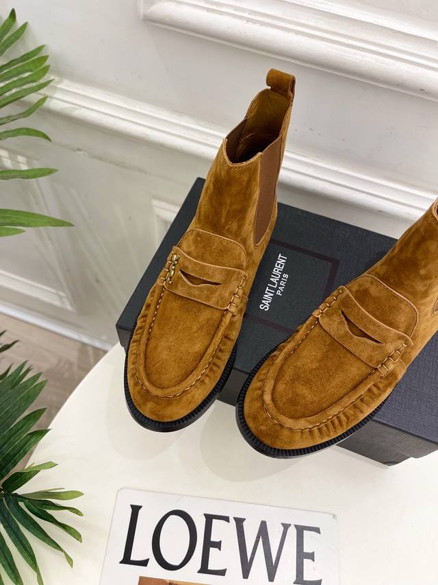 Sain*Laurent 圣罗兰 2025秋冬新品 DDD Le Loafer褶皱乐福切尔西短靴上新 DDD Bs顶级版Ysl超美的一款 以全新的诠释方式首发!极简主义风格 设计超级修饰腿型 复古时髦风格 DDD 随意搭配都好看! DDD 鞋面:高定制进口羊绒 小牛皮 DDD 内里:进口山羊皮里 DDD 大底:意大利真皮大底 DDD 跟高:2Cm DDD 码数:35-39 40.41可定做 DDD 价格p: DDD