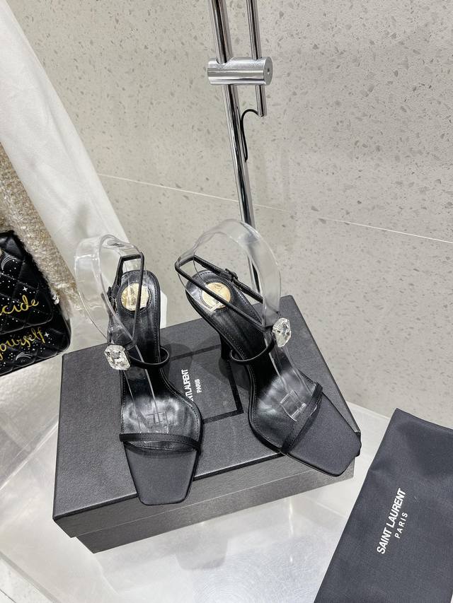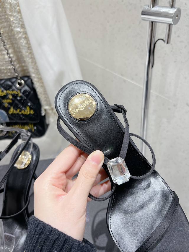 上新 Ysl 顶级高版本 2025官网同步新款后空中跟凉鞋 细节处理完美 垫脚羊皮 质感细腻 意大利黑色真皮大底 极致完美复刻...