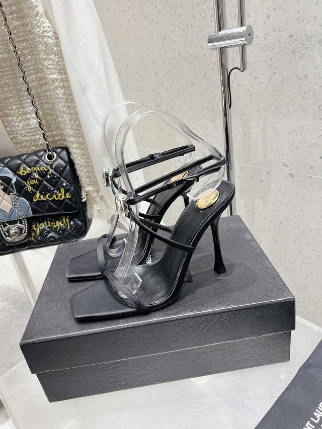 Saint Lauren*圣罗兰 Ysl 新款方头高跟凉鞋 DDD 原版套楦 顶级品质 DDD 材质 DDD 鞋面:进口真丝面料 DDD 垫脚:进口羊皮里 DD
