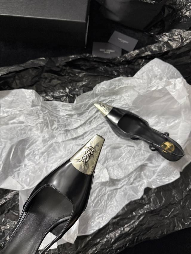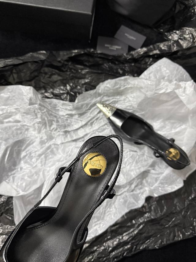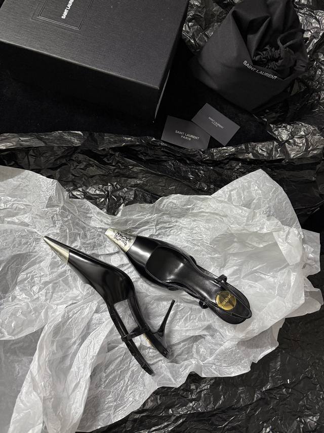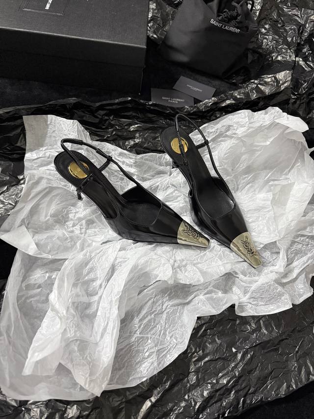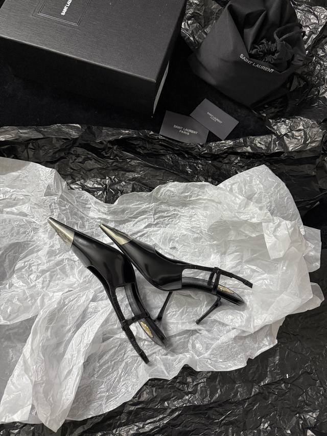 Saint Lauren* Ysl 杨树林新款小金条尖头高跟凉鞋 小姐姐的美丽尤物高跟鞋 优雅迷人性感 女人味十足! 鞋面:小牛皮 真丝...