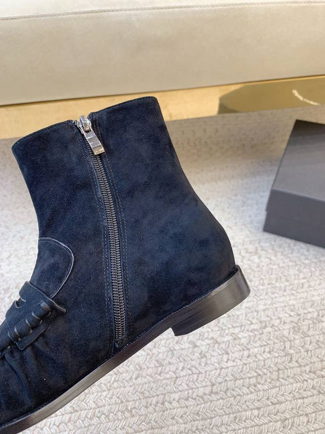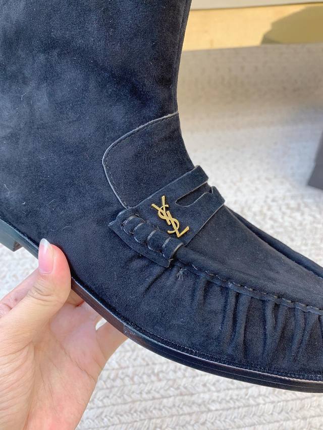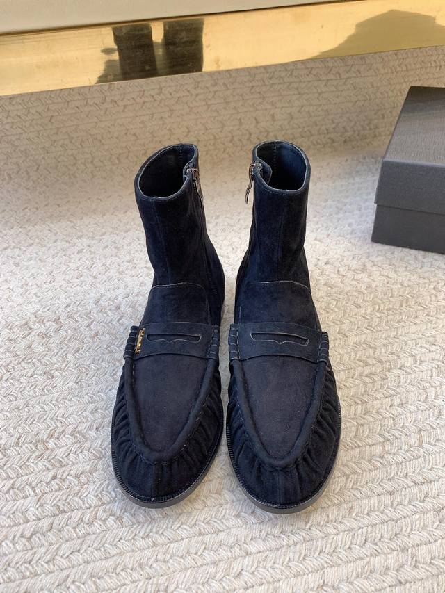 Saint Lauren* Ysl复古褶皱乐福短靴 穆勒鞋头+莫卡辛缝线设计 延生为短靴款式 鞋面:漆皮 羊京 垫脚:羊皮垫脚内里 大底:真皮大底 码数:35-