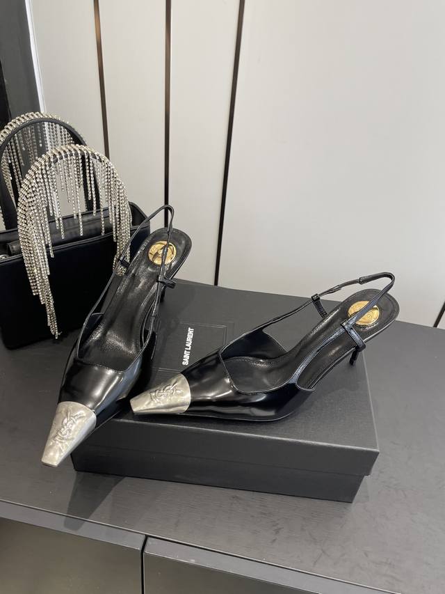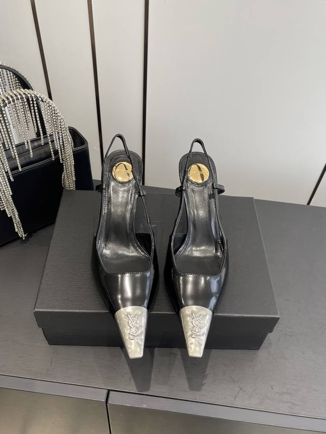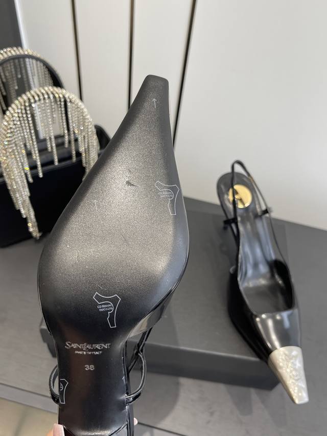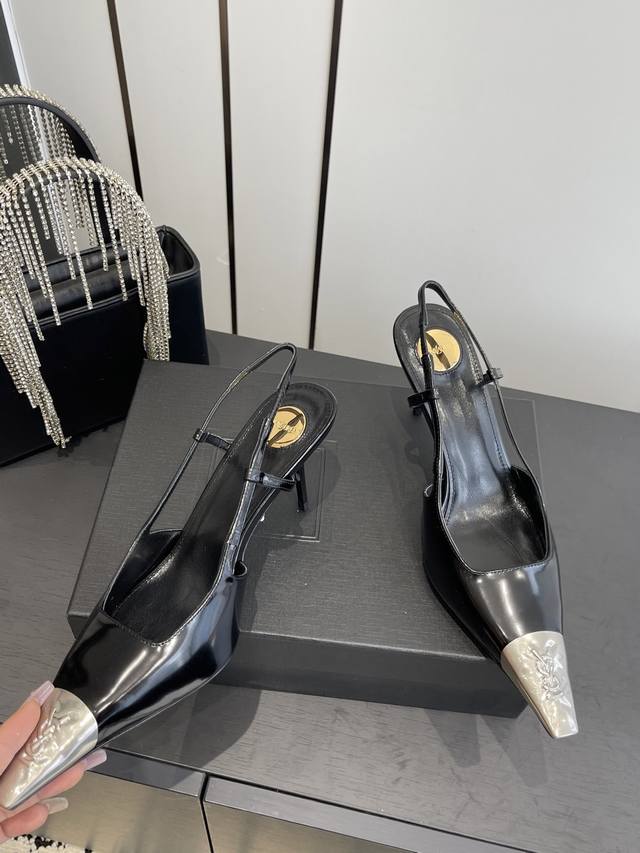 专柜同步更新 Ysl 圣罗兰 Ss 夏季新品 金属头优雅大气高跟凉鞋 全新春夏系列后带方扣高跟凉鞋 !...