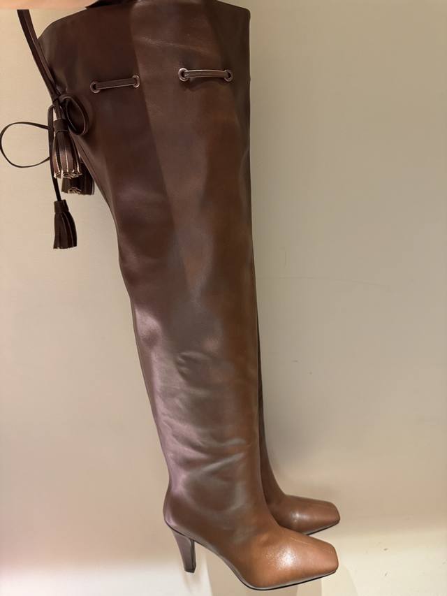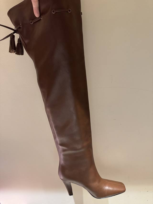 Saint Laurent 圣罗兰 法式气质 高定圆头直筒帅气过膝长靴 法式版型,纯正圣罗兰直筒靴精髓,纯重工艺原厂皮 非市场版看图做货 皮带扣装饰直筒无拉链设