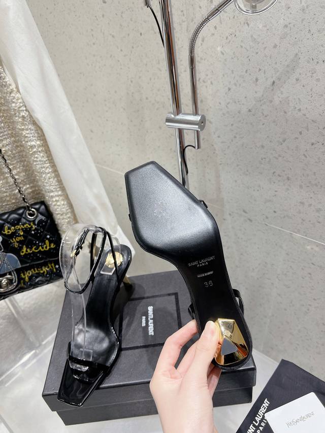 400 Saint Lauren* 春夏大热金属垫系列高跟拖鞋 今年大热的复古金垫配经典字母跟 高雅性感并存 收男也收女的Ysl 女人的刑具...