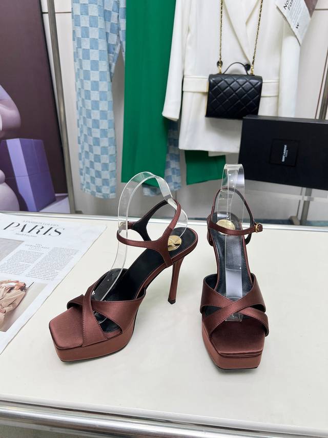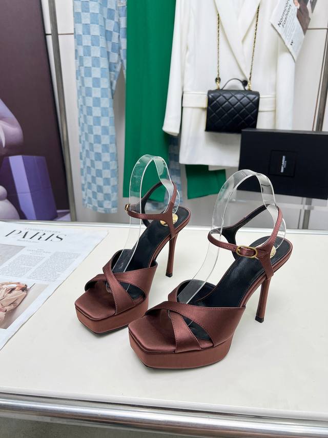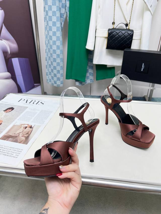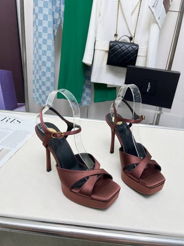 / Saint Laurent Ysl圣罗兰凉鞋 鞋面:真丝面 码数35-42 42定做不退换 跟高8.5Cm 防水台高2.5Cm 真皮大底 2642-12