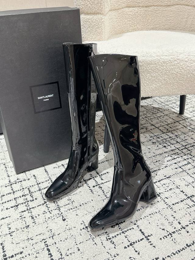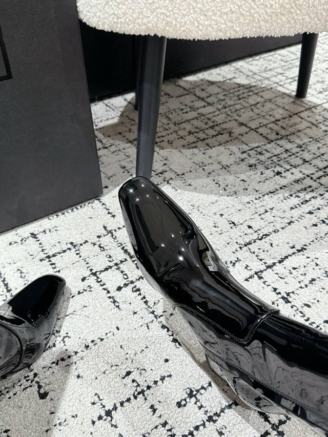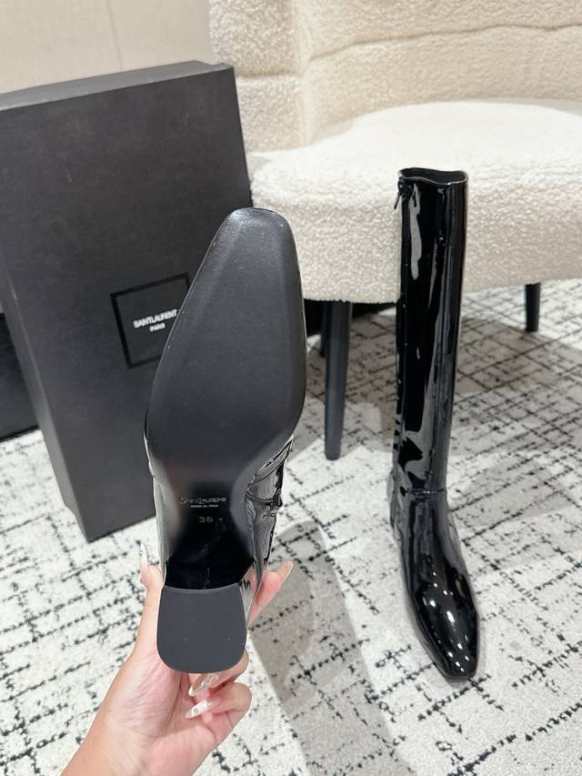 Saint Laurent Ysl圣罗兰方形方头高跟靴子 DDD Ysl这款靴子的设计亮点在于其独特的方形尖鞋头,强烈的视觉冲击力为您带来更多魅力气场。设计犹如点睛之笔,闪耀璀璨光芒 DDD 鞋面:牛漆皮 DDD 内里:水染山羊皮 DDD 大底:意大利真皮大底 DDD 跟高:7Cm DDD 码数:35-39 40定做不退换 DDD