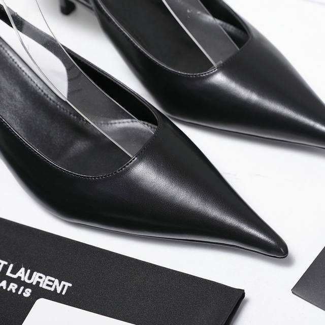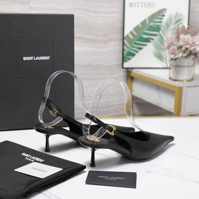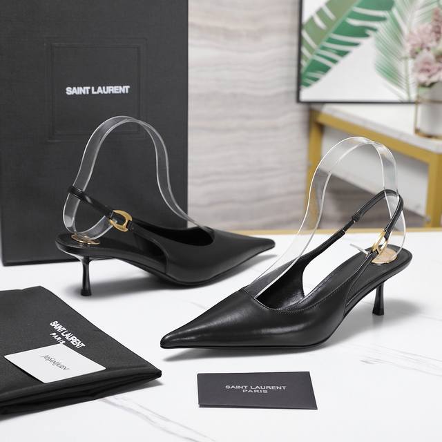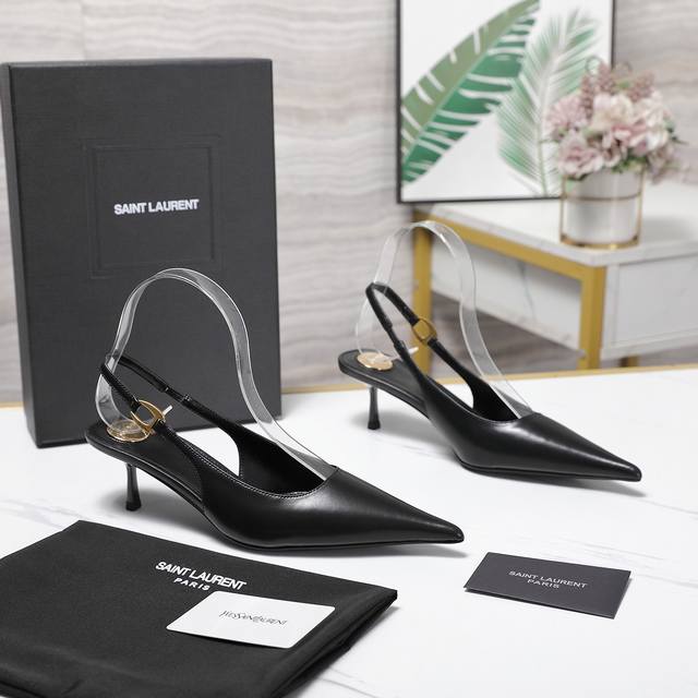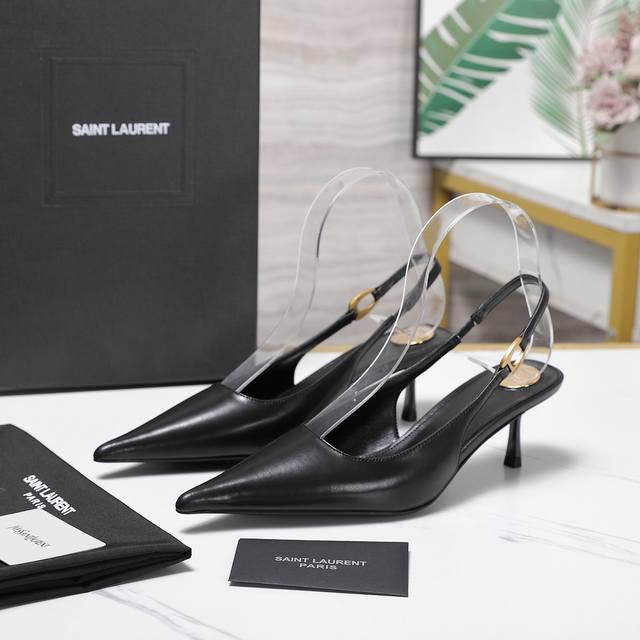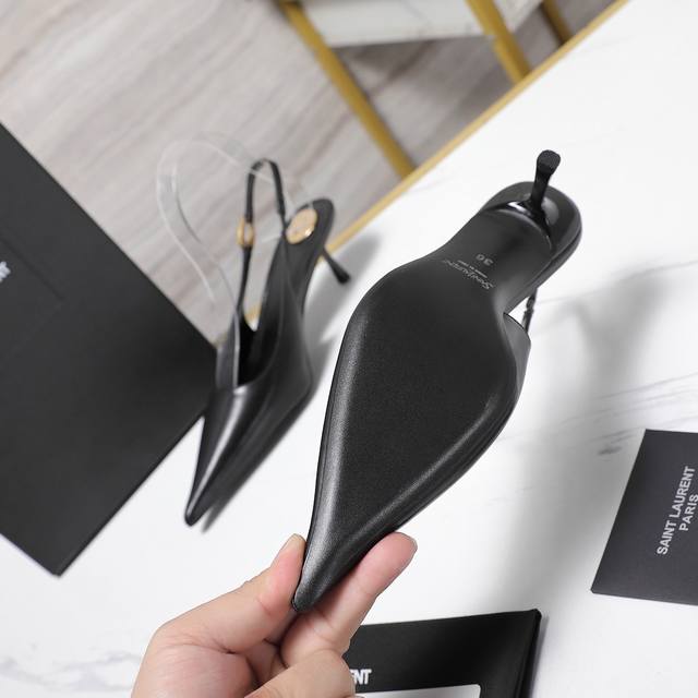 Ysl.顶级版本.高品质. 配置全套包装 2025新款 官网同步 1:1开模 后空凉鞋 鞋面:漆皮 内里:羊皮 跟高: 5Cm 大底:A级原版黑色真皮大底 码数