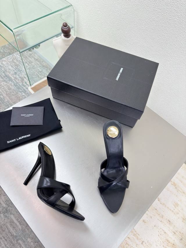 上新 Ysl 顶级高版本 2025官网同步新款细高跟拖鞋 细节处理完美 垫脚羊皮 质感细腻 Aaa级意大利黑色真皮大底 极致完美复刻...