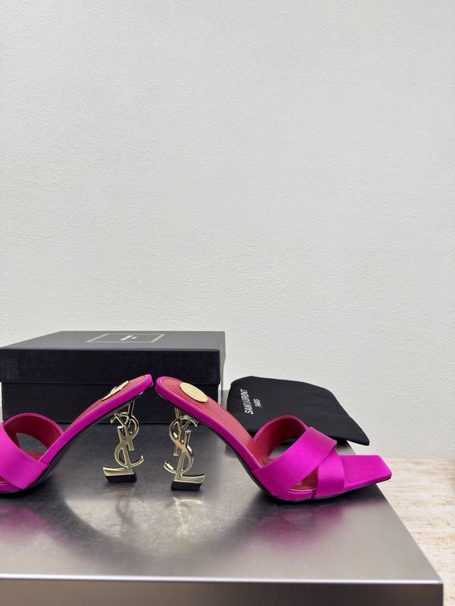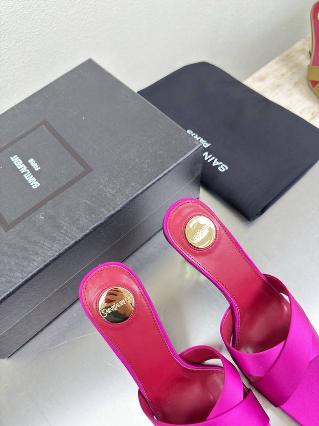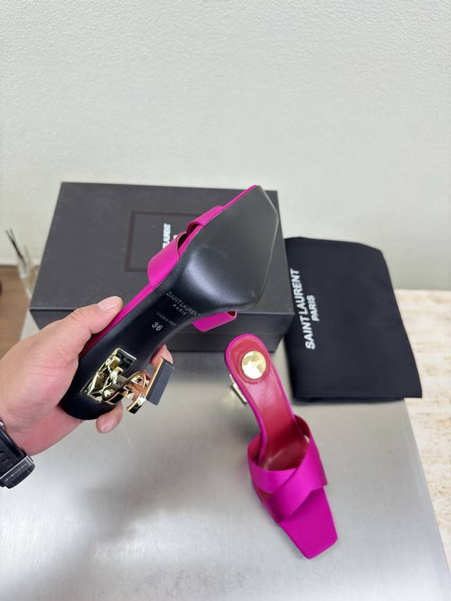 FFF Ysl 金属跟 交叉带拖鞋 DDD 10.5 Cm 跟高 DDD Yvette Saint Laurent圣罗兰Logo DDD 精致高跟 DDD 玫红色真丝材质 DDD 最懂女人心的杨树林 无死角的美鞋 撑起气场 DDD 气质高贵 DDD DDD 进口羊皮内里 贴脚 舒适 DDD 意大利进口真皮大底 DDD DDD 码数:35 36 37 38 39 40 41 42 DDD 40 41 42 订 DDD 配专柜包装 DDD