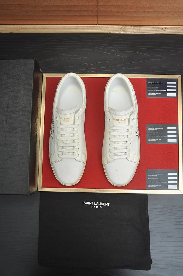 出厂价P Saint Laurent 圣罗兰 -高端品质 原单休闲运动板鞋 -鞋面:纳帕小牛皮打孔工艺、银色牛皮、鞋身.后跟:丝印品牌Logo...