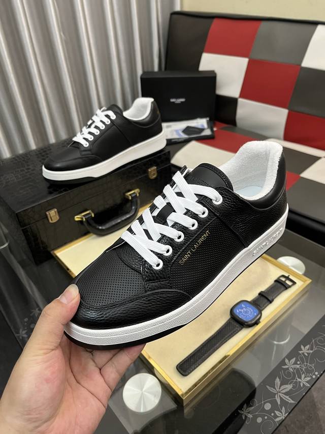 出厂价pp: Saint Laurent圣罗兰最新休闲鞋 小白鞋 超多明星时尚博主种草 朴彩英Rose同款 简约厚底设计 鞋身外侧压Ysl品牌Logo金色标志 极具辨识度又充满高级感 简简单单随便搭牛仔裤裙子休闲裤都是那么好看百搭 当下老钱风首选的休闲鞋 鞋面进口小牛皮 内里毛巾布原版开模大底Size:38-447色可选 DDD