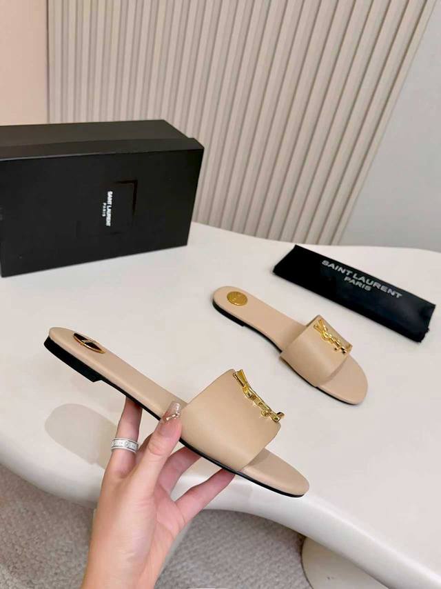 / 实价: 圣罗兰 Yves Saint Laurent,简称Ysl 这是一款女式拖鞋。它采用头层牛皮鞋面,呈现出优雅且富有质感的外观增添女性的妩媚与干练气质。圣罗