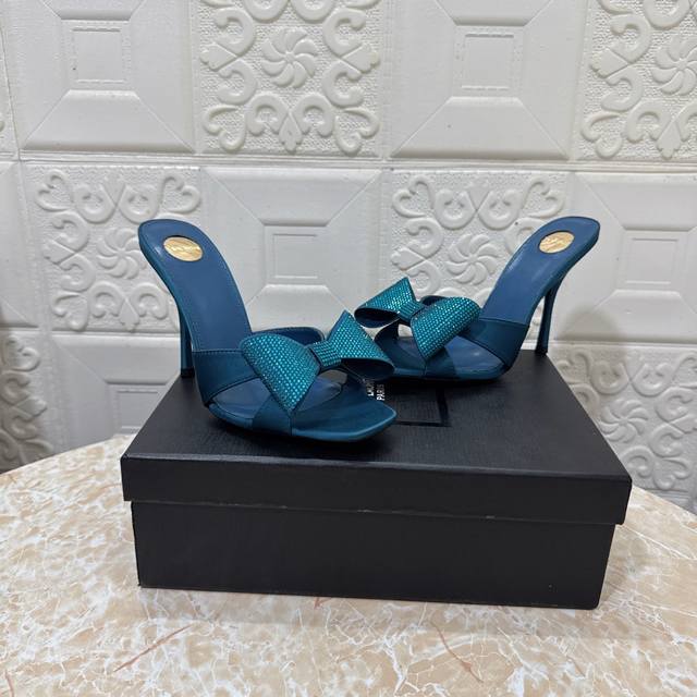 / 工厂p价 女装女鞋 运动原单 Ysl.顶级版本.高品质. 配置全套包装 2025新款 独家开模 水钻花朵装饰 凉鞋 鞋面:真丝 内里:羊皮 跟高: 10.5Cm