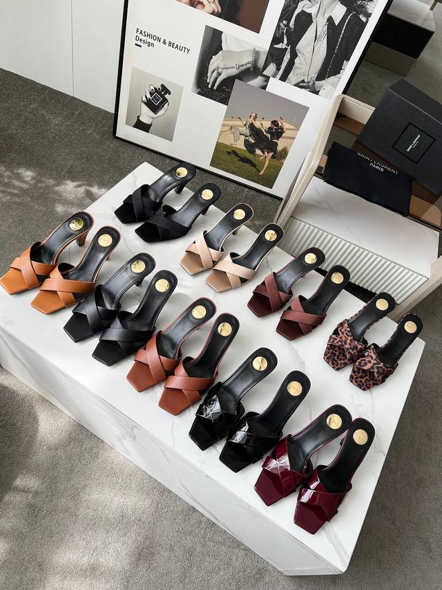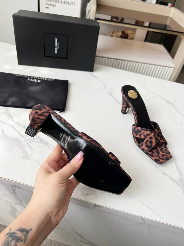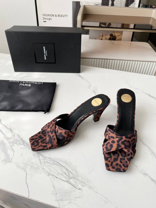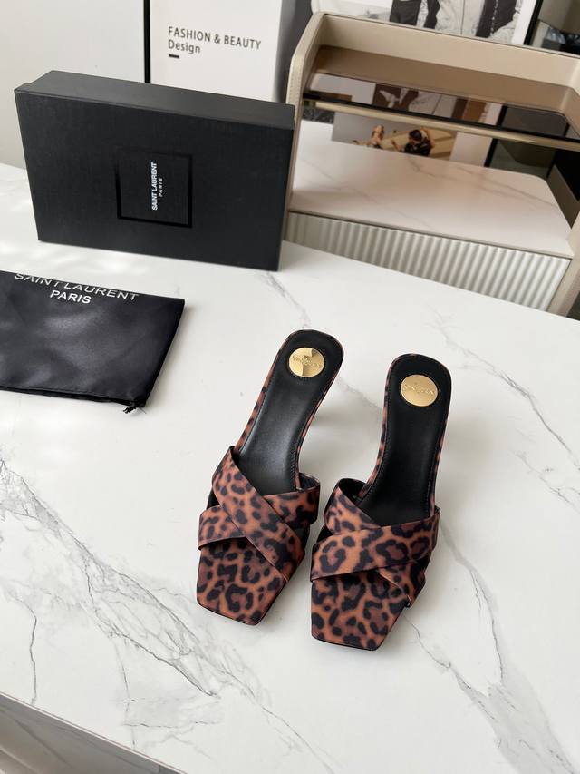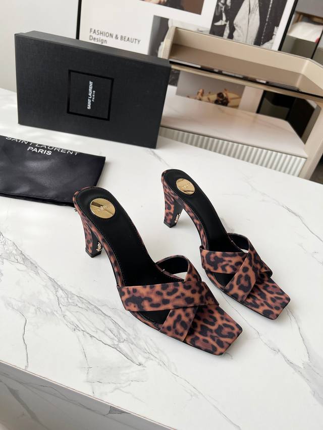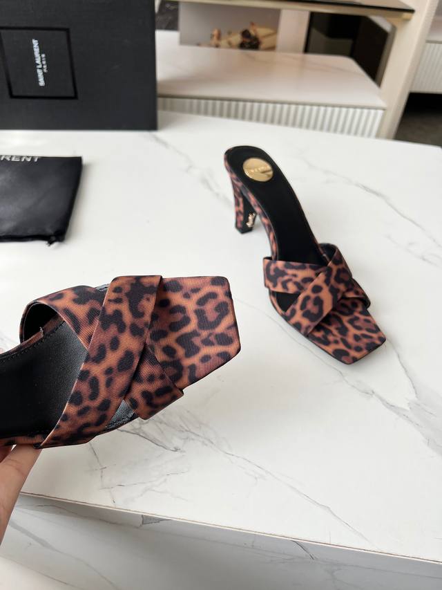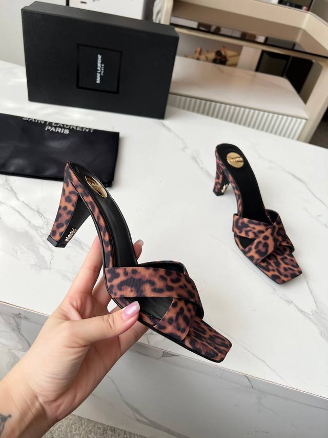 工厂P价 女装女鞋 运动原单 Ysl Saint Laurent* 2025夏季新品 ,优雅大气方头高跟拖鞋鞋跟高度:7.5厘米 3英寸码数: 35-43 42.43定做不退换 面料:豹纹 编号:8503内里: 进口水染羊皮 垫脚: 山羊皮大底: 意大利真皮大底码数:35-43 42 43 定制不退换 穆勒凉鞋,交叉方头和锥形粗跟设计,内侧饰以Le Cassandre。 垫脚金属铭牌镌刻圆形Saint Laurent字样 古铜色金属Le Cassandre