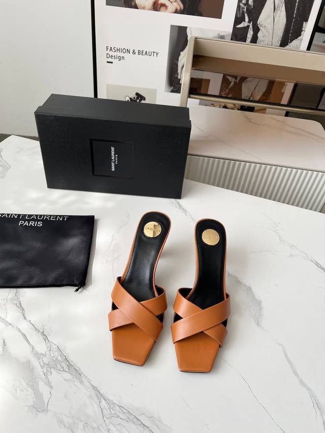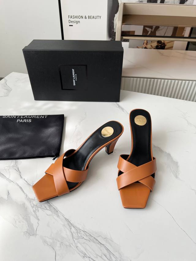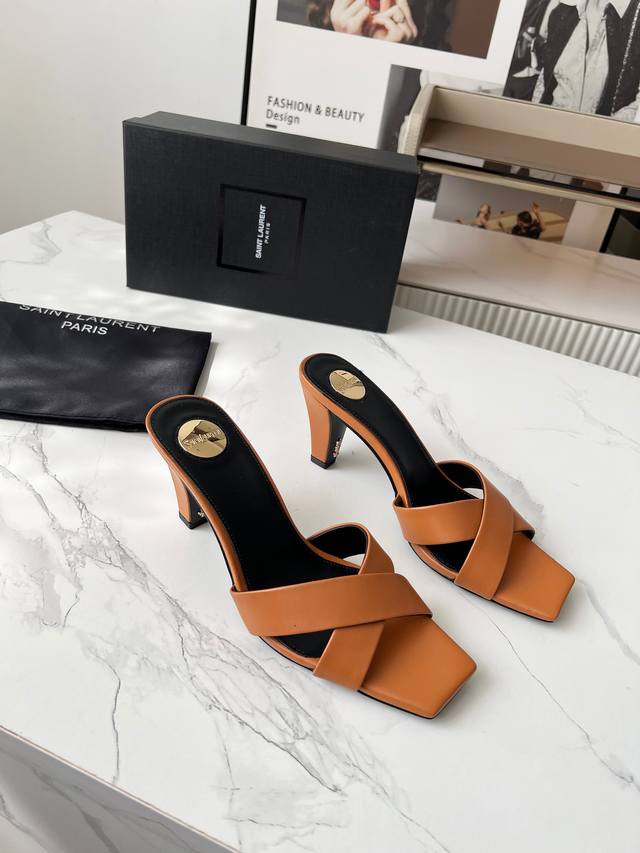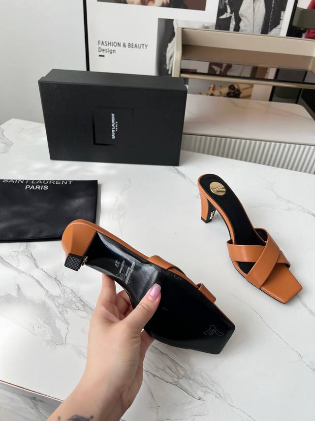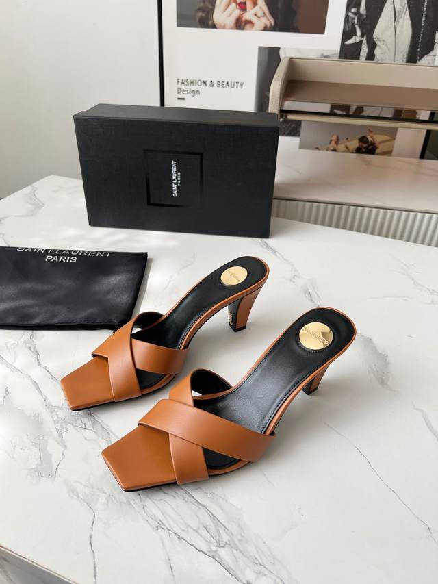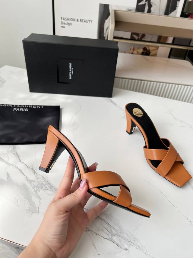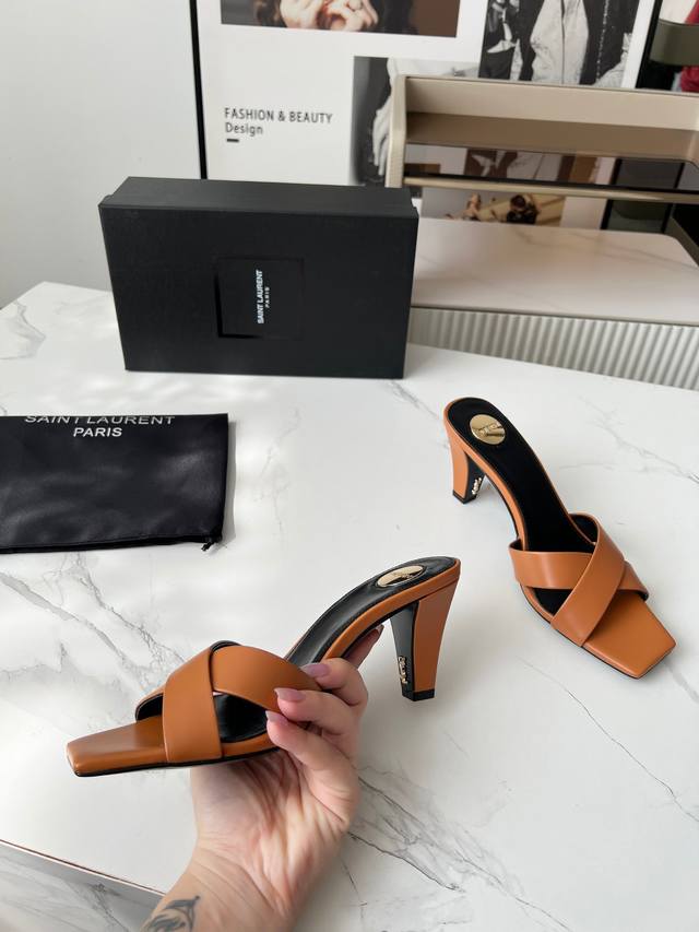 工厂P价 女装女鞋 运动原单 Ysl Saint Laurent* 2025夏季新品 ,优雅大气方头高跟拖鞋鞋跟高度:7.5厘米 3英寸码数: 35-43 42.43定做不退换 面料:头层牛皮 编号:8503内里: 进口水染羊皮 垫脚: 山羊皮大底: 意大利真皮大底码数:35-43 42 43 定制不退换 穆勒凉鞋,交叉方头和锥形粗跟设计,内侧饰以Le Cassandre。 垫脚金属铭牌镌刻圆形Saint Laurent字样 古铜色金属Le Cassandre
