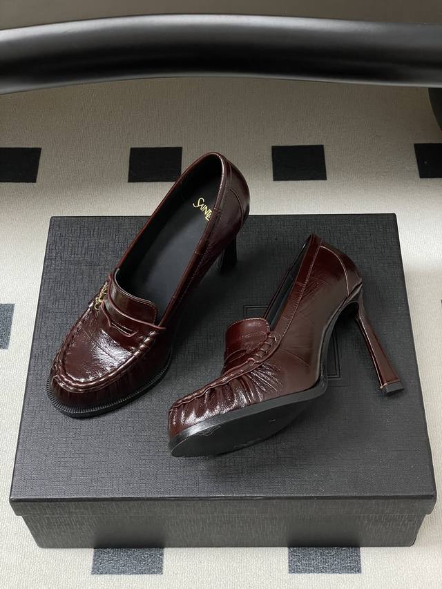 FFF 工厂P价 -顶级品质 DDD Saint Laurent 圣罗兰Fw26 New Arrival~ DDD Ysl Le Loafer高跟乐福鞋系列 26Fw春夏新款复古质感鳗鱼纹褶皱高跟乐福鞋 穆勒鞋麂皮绒面老钱风高跟单鞋 半拖鞋一脚蹬休闲鞋 DDD 标志性褶皱鞋头+手工莫卡辛缝线,自带复古松弛感;鞋身是乐福鞋经典一脚蹬设计,搭配金属Ysl标志,简约又有辨识度。 DDD 皮革内衬+真皮大底,质感和舒适度都在线。风格适配性强,既能搭正装 西装 裙装 走精致路线,也能配休闲装,牛仔裤 卫衣,打造松弛