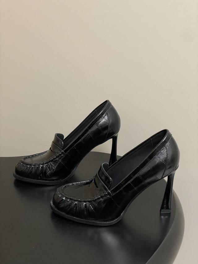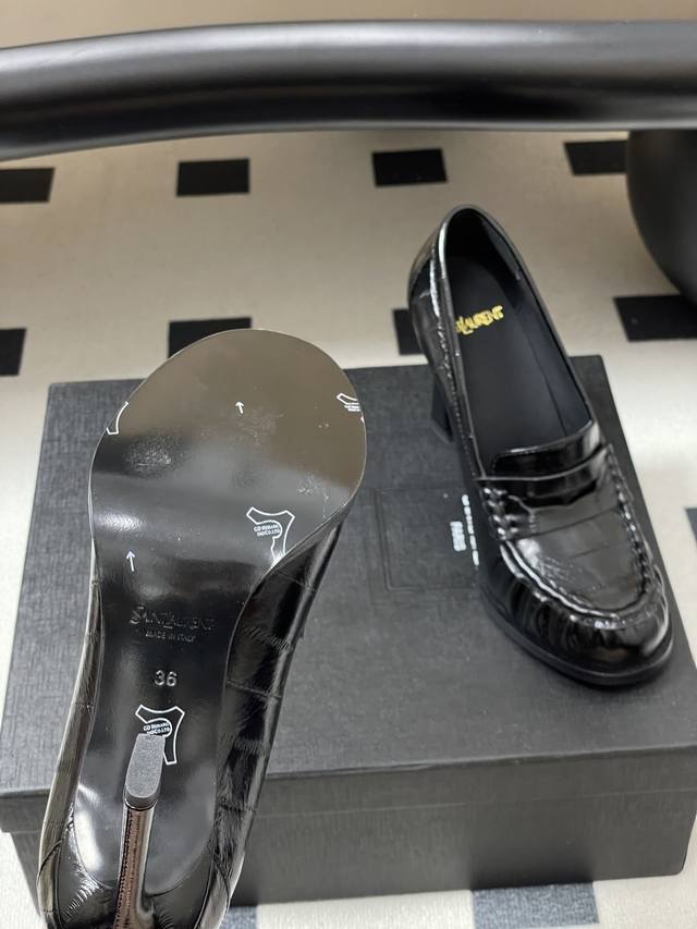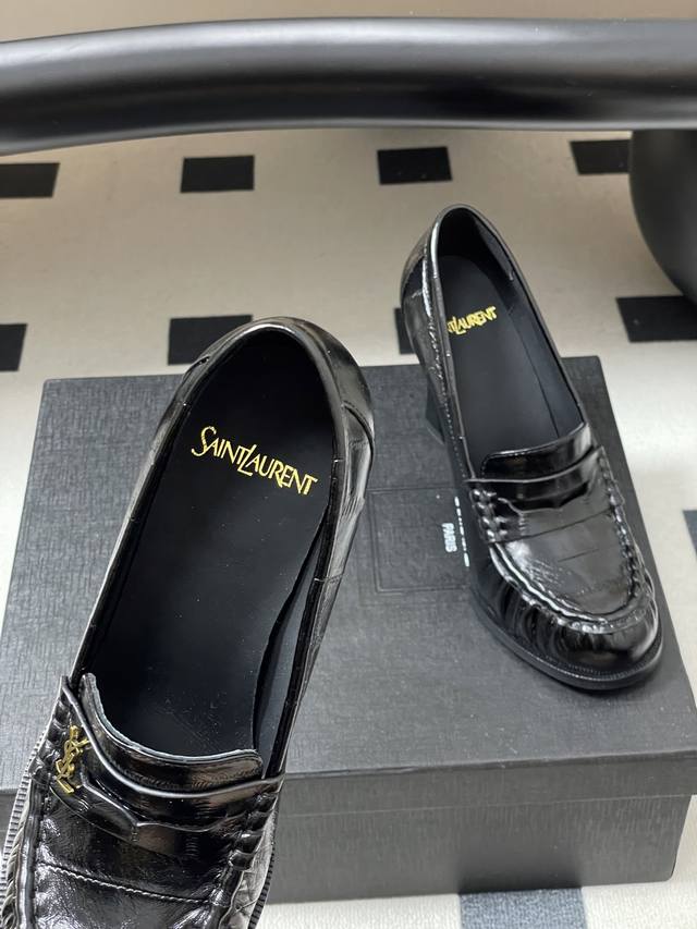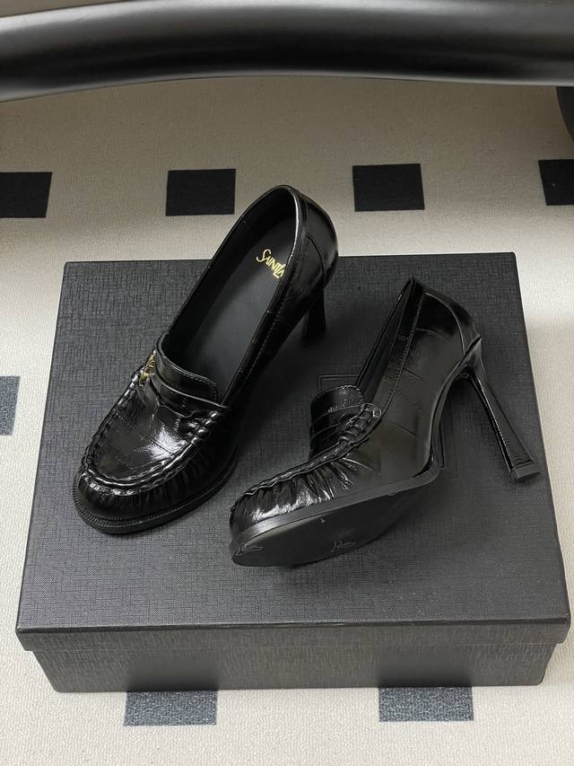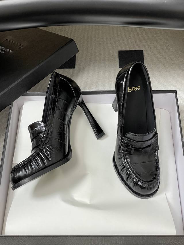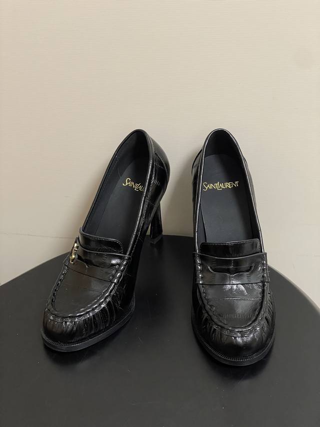 工厂p价 -顶级品质 Ddd Saint Laurent 圣罗兰Fw26 New Arrival~ Ddd Ysl Le Loafer高跟乐福鞋系列 26Fw春夏新款复古质感鳗鱼纹褶皱高跟乐福鞋 穆勒鞋麂皮绒面老钱风高跟单鞋 半拖鞋一脚蹬休闲鞋 Ddd 标志性褶皱鞋头+手工莫卡辛缝线,自带复古松弛感;鞋身是乐福鞋经典一脚蹬设计,搭配金属Ysl标志,简约又有辨识度。 Ddd 皮革内衬+真皮大底,质感和舒适度都在线。风格适配性强,既能搭正装 西装 裙装 走精致路线,也能配休闲装,牛仔裤 卫衣,打造松弛感,属于