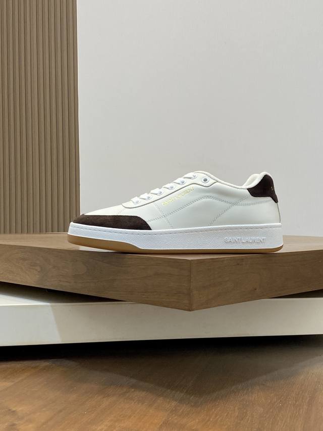 情侣款Saint Laurent圣罗兰低帮系带运动鞋 S L61官网新款 品牌旗舰店同步、意大利原胚粒面牛皮+正面饰片点缀多孔皮革、拉环饰以金色Saint La