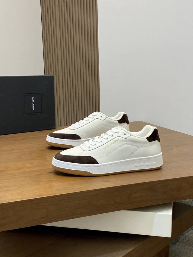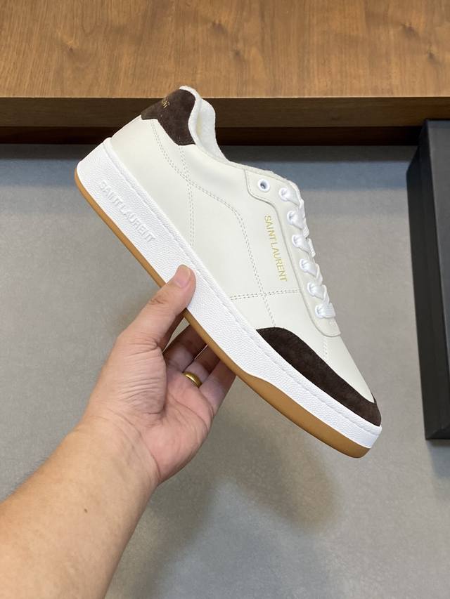 情侣款Saint Laurent圣罗兰低帮系带运动鞋 DDD S L61官网新款 品牌旗舰店同步、意大利原胚粒面牛皮+正面饰片点缀多孔皮革、拉环饰以金色Saint Laurent标志,侧面饰以Sl 61标志 后帮压印圣罗兰标志 内里Tw柔软毛巾布、更加增强鞋子的柔软性、透气性及包裹性、无中底套楦做法、加记忆脚床鞋垫!脚感更加无比舒适轻便 、环保防滑橡胶双色大底、大底周圈车真线 更加增强了整双鞋子的舒适度 牢固度 完美用细节说话 ! DDD 尺码:女款35-39 40.41定做 男款38-45!原盒包装+防