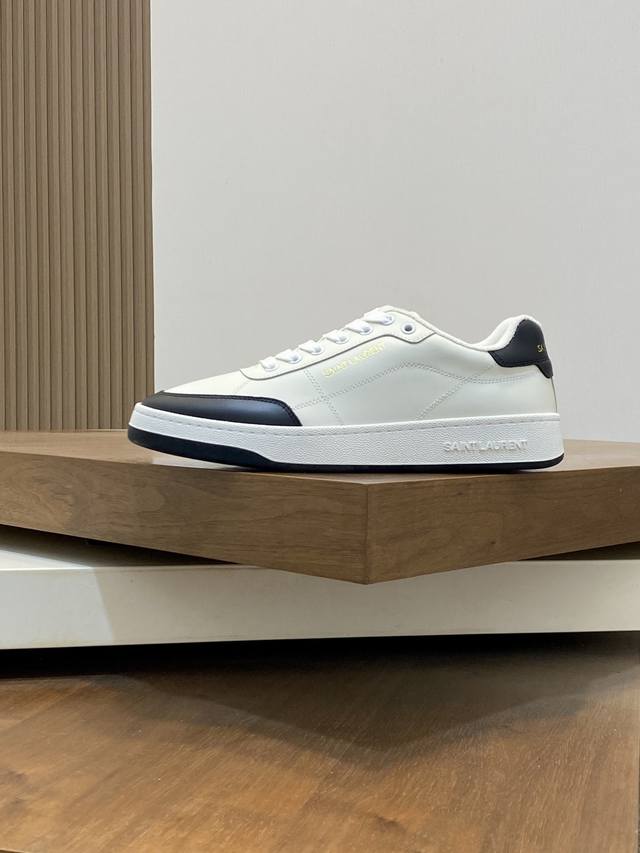 情侣款Saint Laurent圣罗兰低帮系带运动鞋 S L61官网新款 品牌旗舰店同步、意大利原胚粒面牛皮+正面饰片点缀多孔皮革、拉环饰以金色Saint La