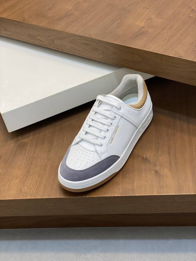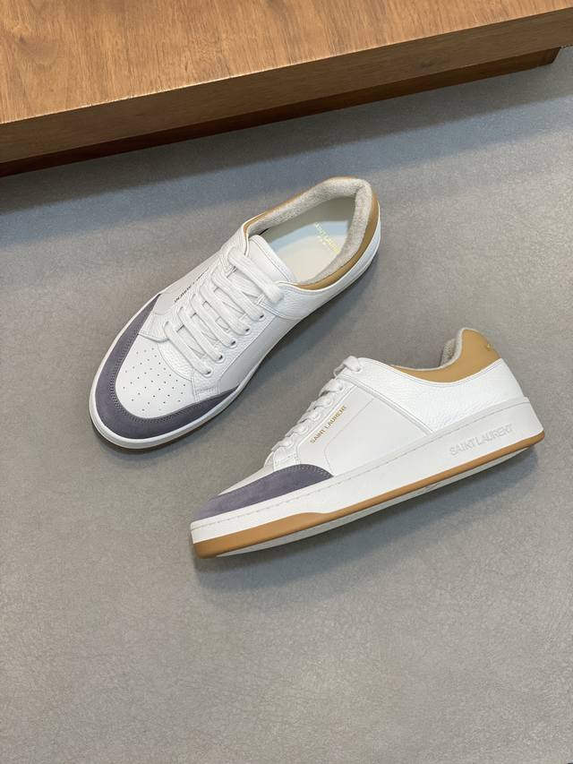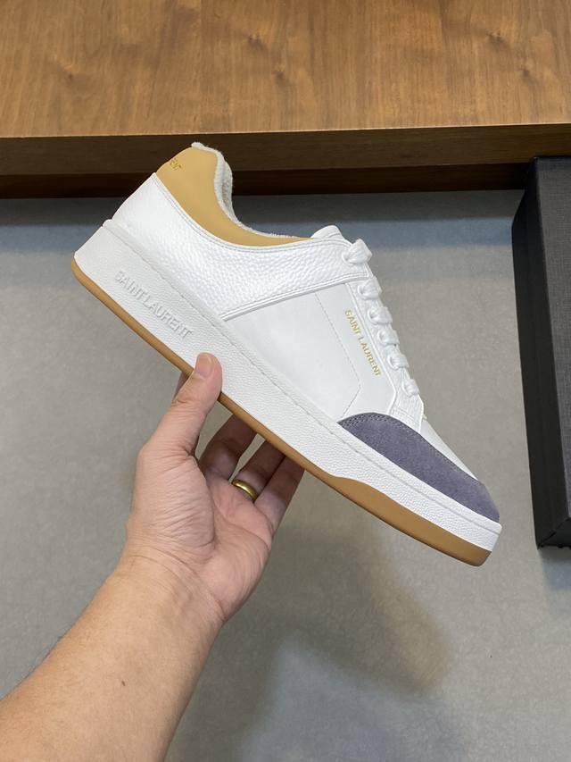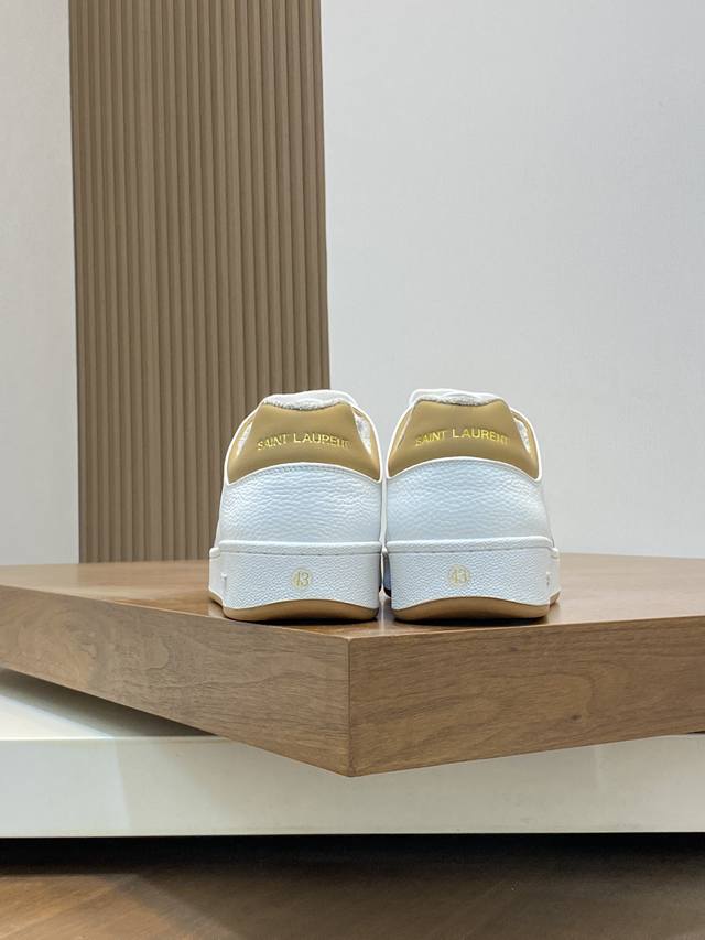 情侣款Saint Laurent圣罗兰低帮系带运动鞋 S L61官网新款 品牌旗舰店同步、意大利原胚粒面牛皮+正面饰片点缀多孔皮革、拉环饰以金色Saint La