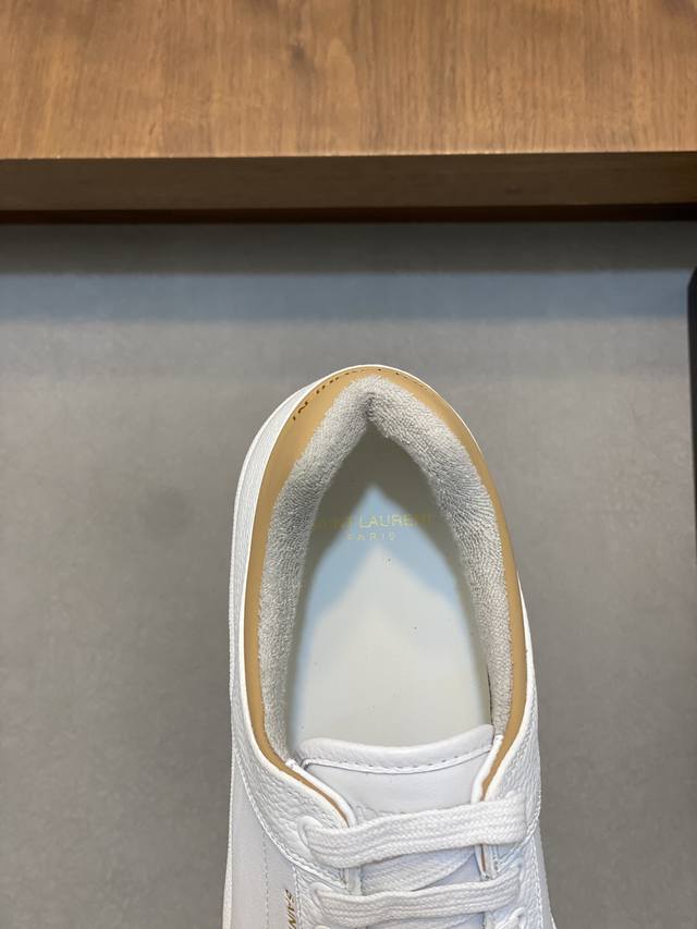 情侣款Saint Laurent圣罗兰低帮系带运动鞋 DDD S L61官网新款 品牌旗舰店同步、意大利原胚粒面牛皮+正面饰片点缀多孔皮革、拉环饰以金色Saint Laurent标志,侧面饰以Sl 61标志 后帮压印圣罗兰标志 内里Tw柔软毛巾布、更加增强鞋子的柔软性、透气性及包裹性、无中底套楦做法、加记忆脚床鞋垫!脚感更加无比舒适轻便 、环保防滑橡胶双色大底、大底周圈车真线 更加增强了整双鞋子的舒适度 牢固度 完美用细节说话 ! DDD 尺码:女款35-39 40.41定做 男款38-45!原盒包装+防