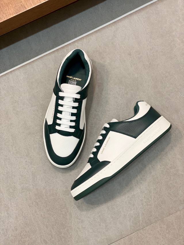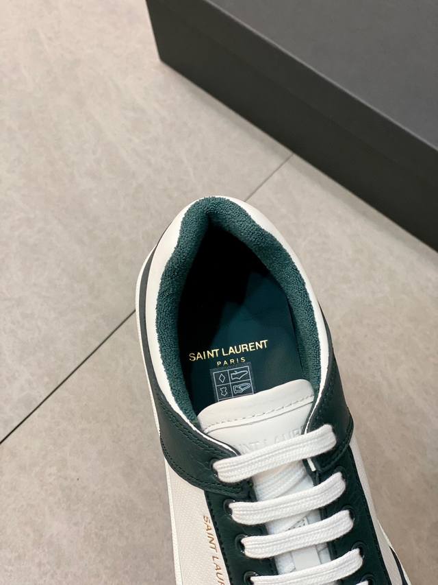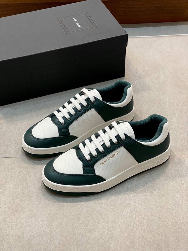 情侣款Saint Laurent圣罗兰低帮系带运动鞋 DDD S L61官网新款 品牌旗舰店同步、意大利原胚粒面牛皮+正面饰片点缀多孔皮革、拉环饰以金色Saint Laurent标志,侧面饰以Sl 61标志 后帮压印圣罗兰标志 内里Tw柔软毛巾布、更加增强鞋子的柔软性、透气性及包裹性、无中底套楦做法、加记忆脚床鞋垫!脚感更加无比舒适轻便 、环保防滑橡胶双色大底、大底周圈车真线 更加增强了整双鞋子的舒适度 牢固度 完美用细节说话 ! DDD 尺码:女款35-39 40.41定做 男款38-45!原盒包装+防