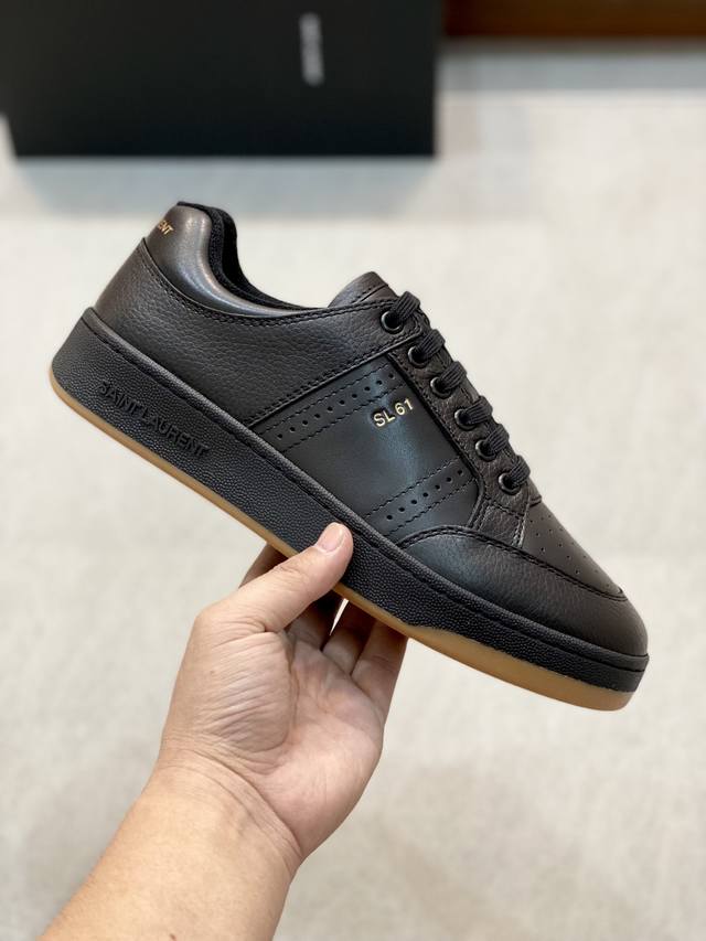 情侣款Saint Laurent圣罗兰低帮系带运动鞋 S L61官网新款 品牌旗舰店同步、意大利原胚粒面牛皮+正面饰片点缀多孔皮革、拉环饰以金色Saint La