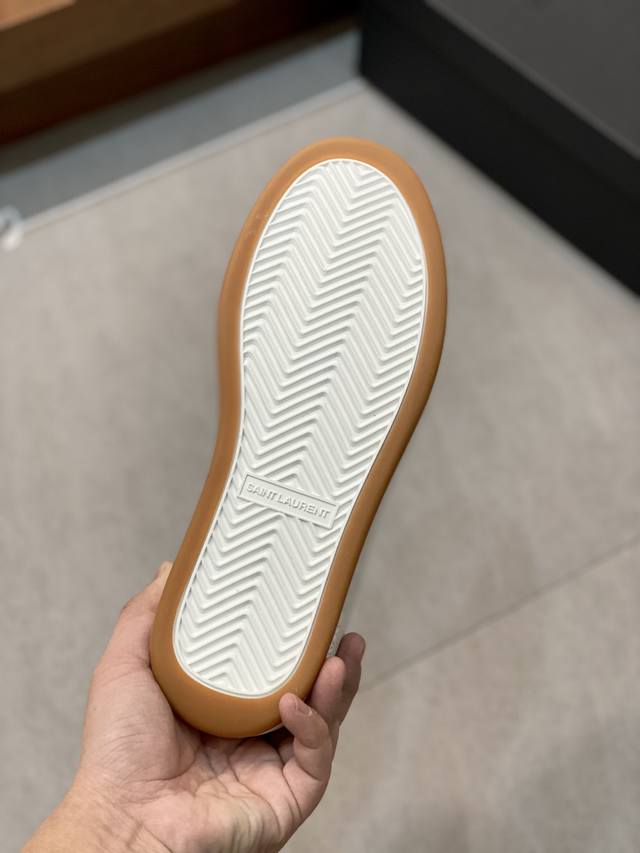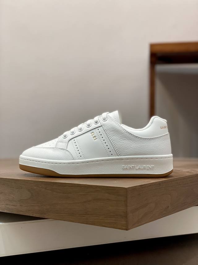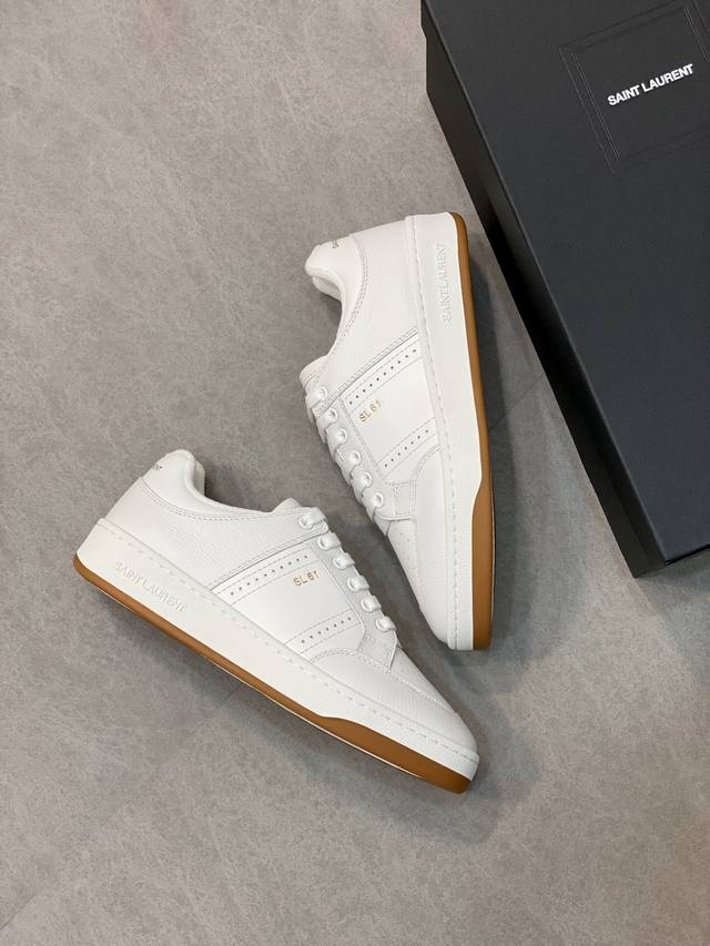 情侣款Saint Laurent圣罗兰低帮系带运动鞋 S L61官网新款 品牌旗舰店同步、意大利原胚粒面牛皮+正面饰片点缀多孔皮革、拉环饰以金色Saint La