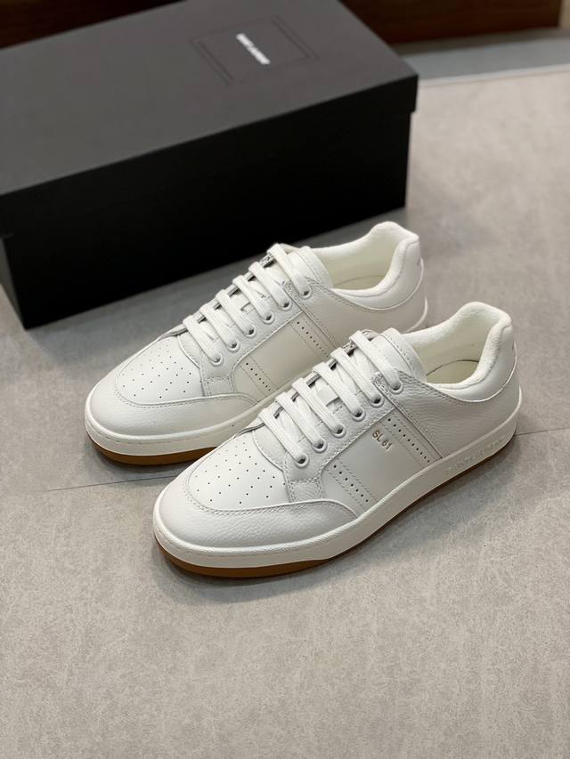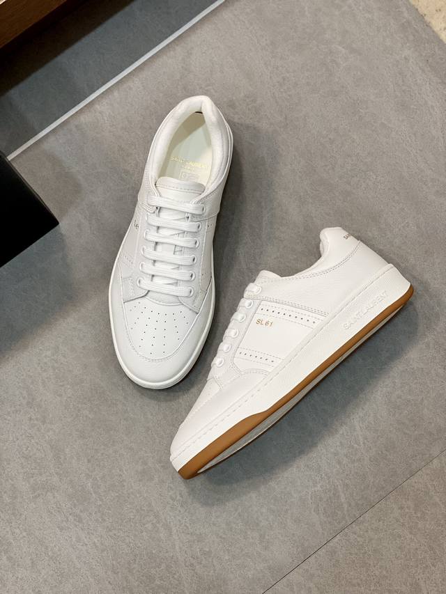 情侣款Saint Laurent圣罗兰低帮系带运动鞋 DDD S L61官网新款 品牌旗舰店同步、意大利原胚粒面牛皮+正面饰片点缀多孔皮革、拉环饰以金色Saint Laurent标志,侧面饰以Sl 61标志 后帮压印圣罗兰标志 内里Tw柔软毛巾布、更加增强鞋子的柔软性、透气性及包裹性、无中底套楦做法、加记忆脚床鞋垫!脚感更加无比舒适轻便 、环保防滑橡胶双色大底、大底周圈车真线 更加增强了整双鞋子的舒适度 牢固度 完美用细节说话 ! DDD 尺码:女款35-39 40.41定做 男款38-45!原盒包装+防