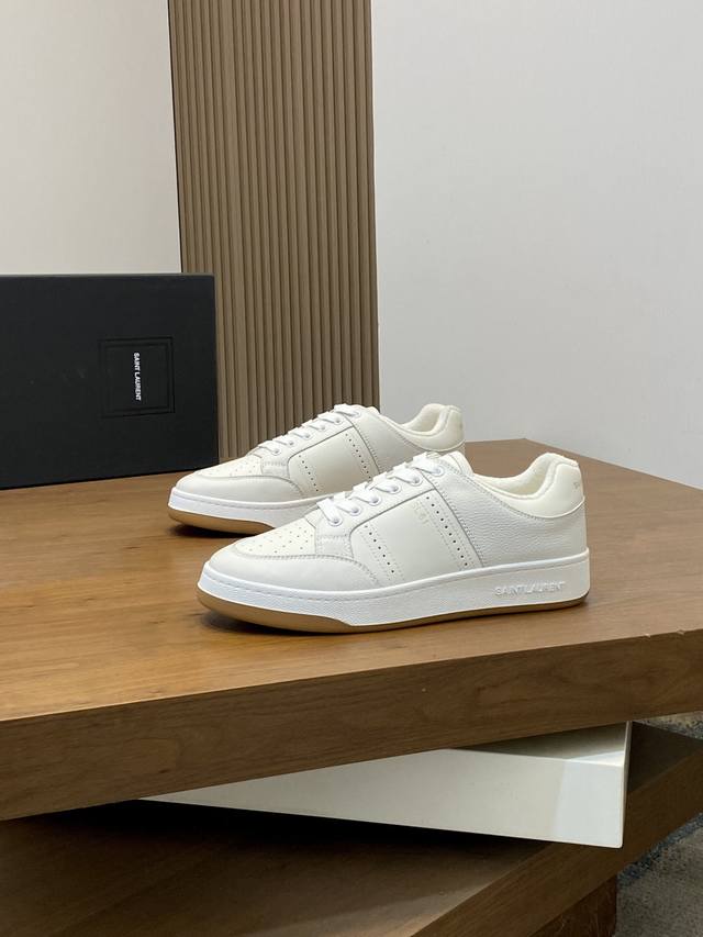 情侣款Saint Laurent圣罗兰低帮系带运动鞋 S L61官网新款 品牌旗舰店同步、意大利原胚粒面牛皮+正面饰片点缀多孔皮革、拉环饰以金色Saint La