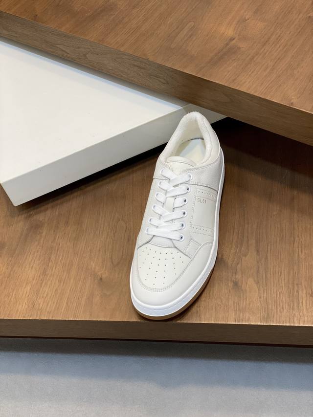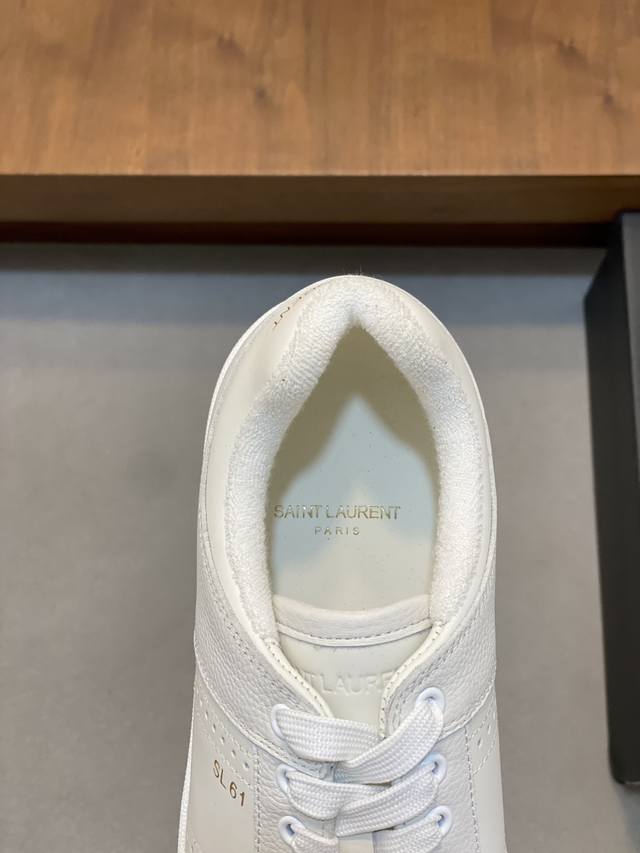 情侣款Saint Laurent圣罗兰低帮系带运动鞋 DDD S L61官网新款 品牌旗舰店同步、意大利原胚粒面牛皮+正面饰片点缀多孔皮革、拉环饰以金色Saint Laurent标志,侧面饰以Sl 61标志 后帮压印圣罗兰标志 内里Tw柔软毛巾布、更加增强鞋子的柔软性、透气性及包裹性、无中底套楦做法、加记忆脚床鞋垫!脚感更加无比舒适轻便 、环保防滑橡胶双色大底、大底周圈车真线 更加增强了整双鞋子的舒适度 牢固度 完美用细节说话 ! DDD 尺码:女款35-39 40.41定做 男款38-45!原盒包装+防