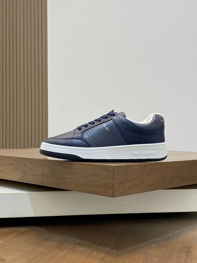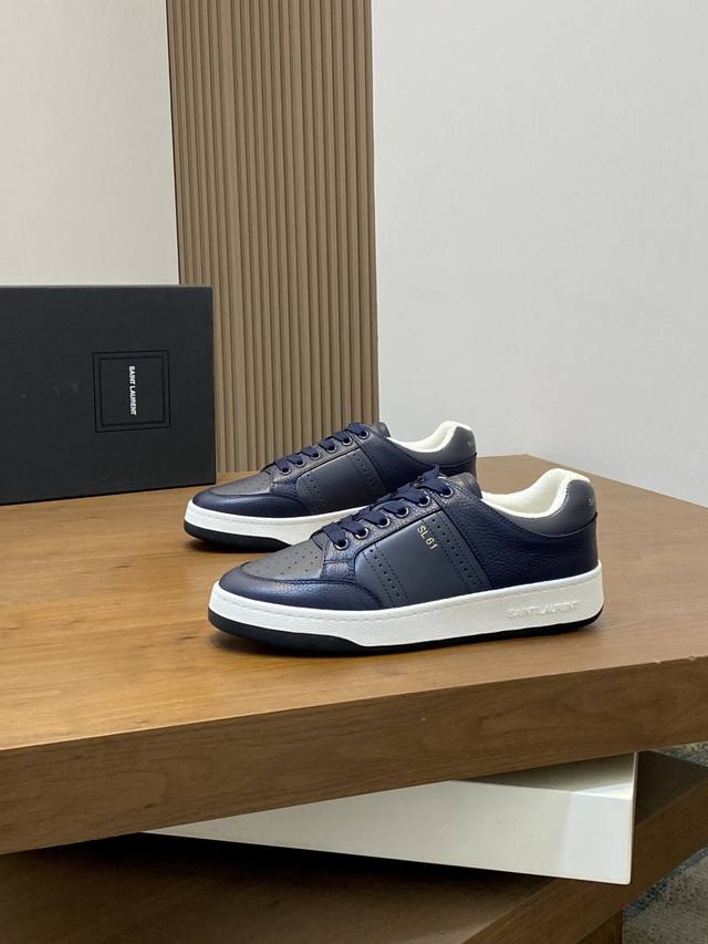 情侣款Saint Laurent圣罗兰低帮系带运动鞋 S L61官网新款 品牌旗舰店同步、意大利原胚粒面牛皮+正面饰片点缀多孔皮革、拉环饰以金色Saint La