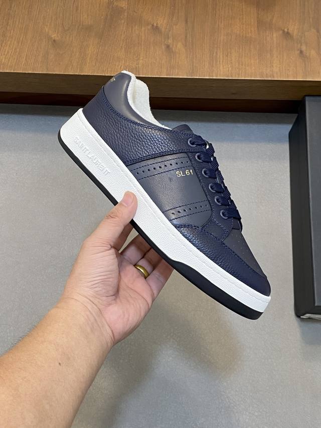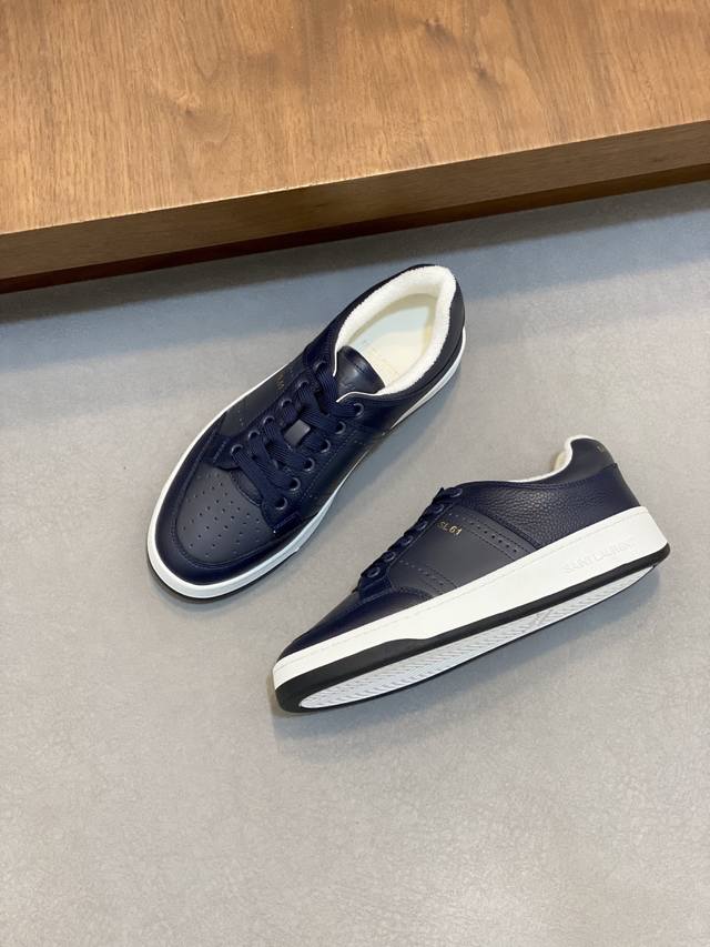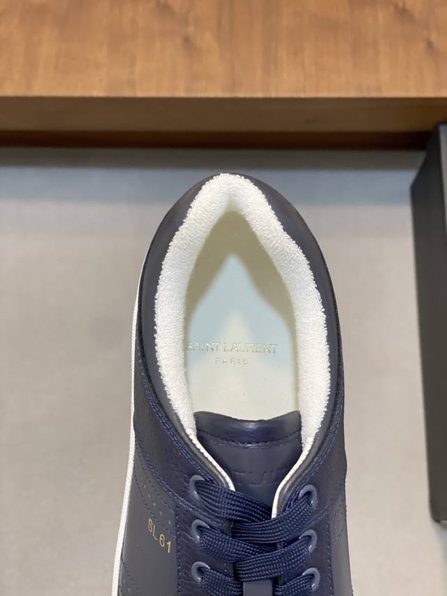 情侣款Saint Laurent圣罗兰低帮系带运动鞋 DDD S L61官网新款 品牌旗舰店同步、意大利原胚粒面牛皮+正面饰片点缀多孔皮革、拉环饰以金色Saint Laurent标志,侧面饰以Sl 61标志 后帮压印圣罗兰标志 内里Tw柔软毛巾布、更加增强鞋子的柔软性、透气性及包裹性、无中底套楦做法、加记忆脚床鞋垫!脚感更加无比舒适轻便 、环保防滑橡胶双色大底、大底周圈车真线 更加增强了整双鞋子的舒适度 牢固度 完美用细节说话 ! DDD 尺码:女款35-39 40.41定做 男款38-45!原盒包装+防