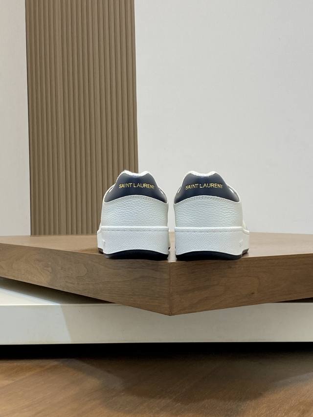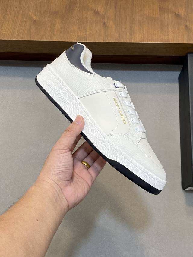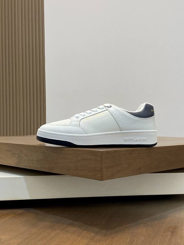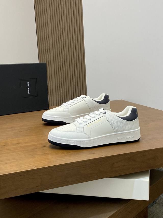 情侣款Saint Laurent圣罗兰低帮系带运动鞋 S L61官网新款 品牌旗舰店同步、意大利原胚粒面牛皮+正面饰片点缀多孔皮革、拉环饰以金色Saint La
