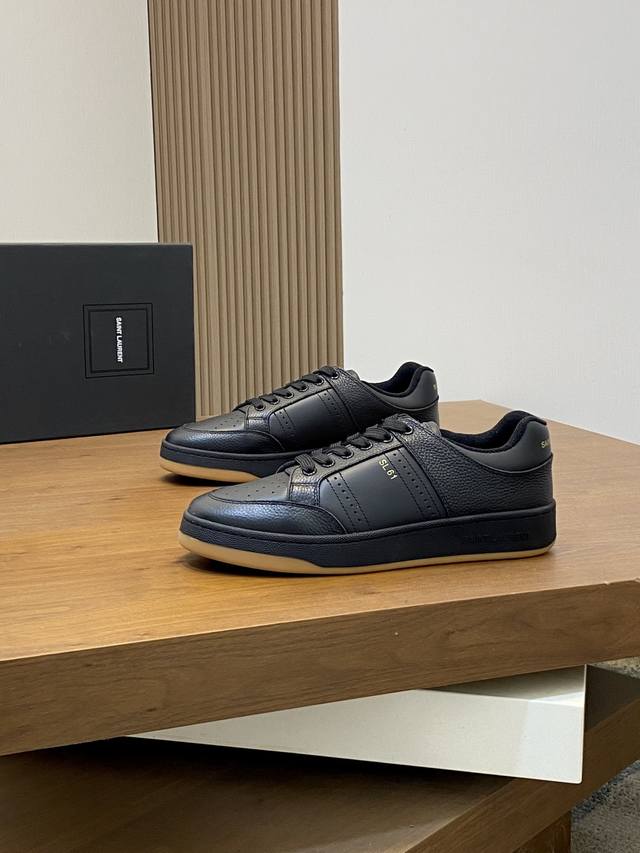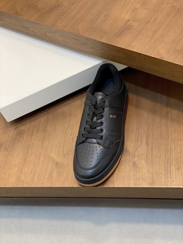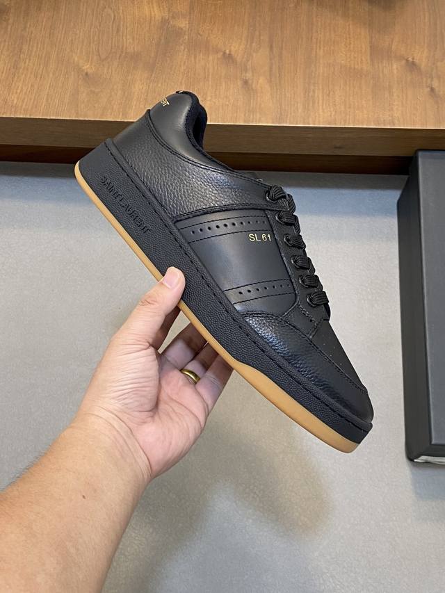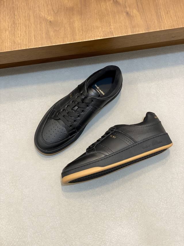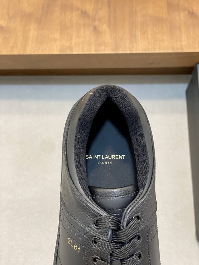 情侣款Saint Laurent圣罗兰低帮系带运动鞋 S L61官网新款 品牌旗舰店同步、意大利原胚粒面牛皮+正面饰片点缀多孔皮革、拉环饰以金色Saint La