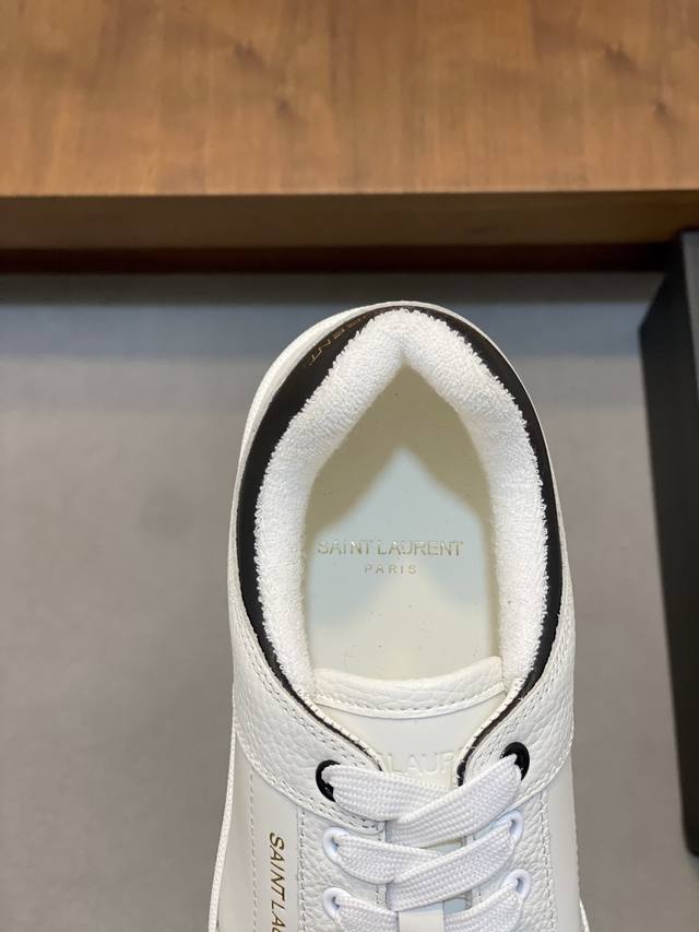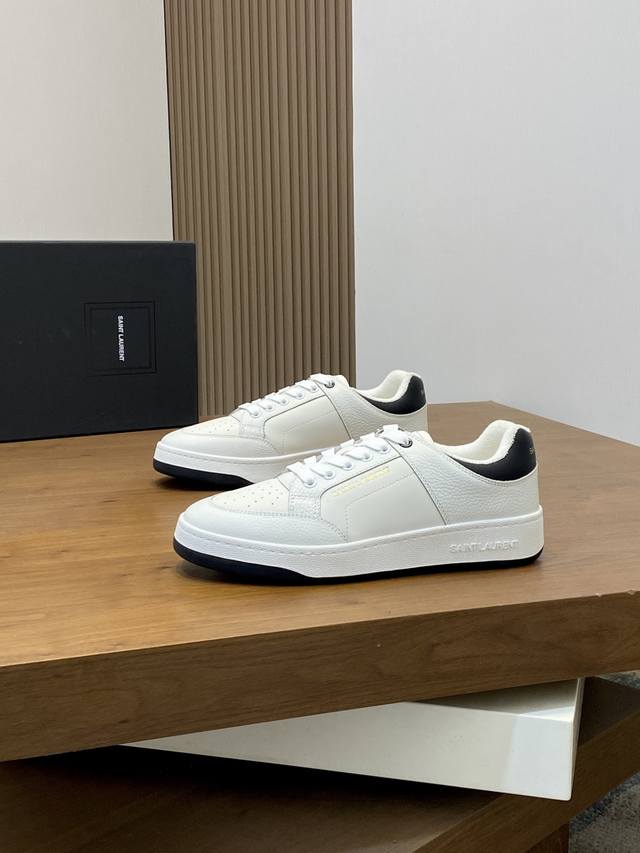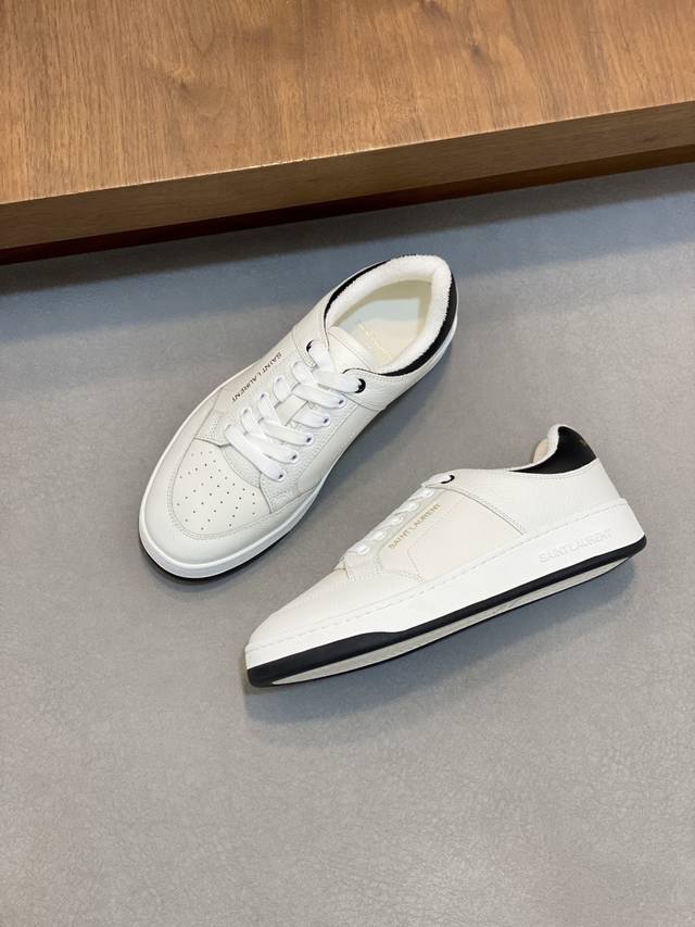 情侣款Saint Laurent圣罗兰低帮系带运动鞋 S L61官网新款 品牌旗舰店同步、意大利原胚粒面牛皮+正面饰片点缀多孔皮革、拉环饰以金色Saint La