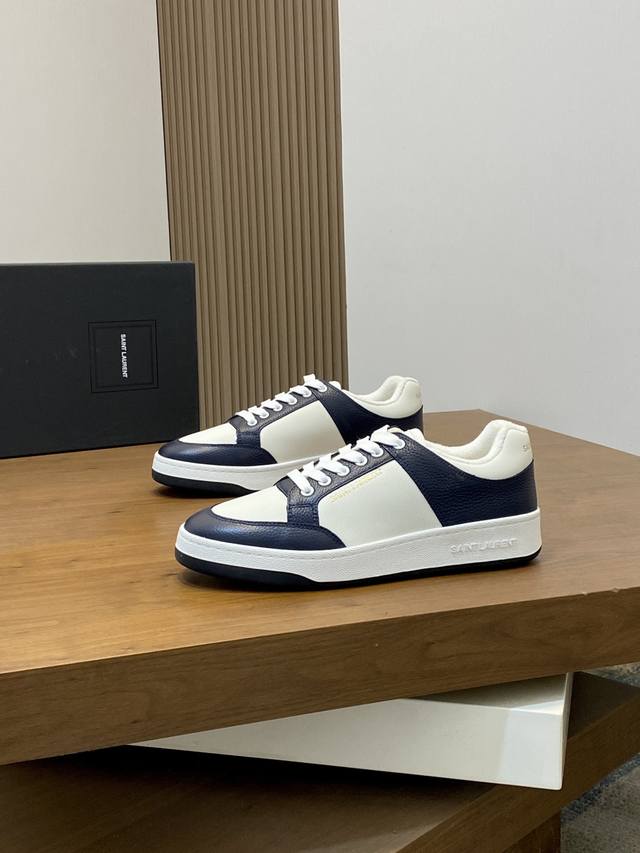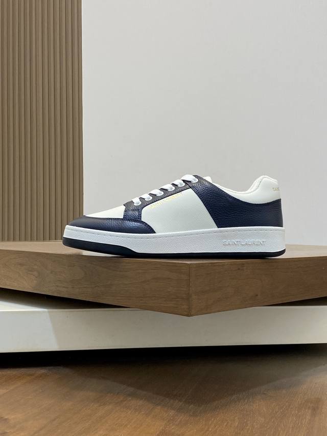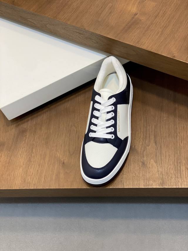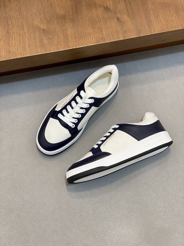 情侣款Saint Laurent圣罗兰低帮系带运动鞋 S L61官网新款 品牌旗舰店同步、意大利原胚粒面牛皮+正面饰片点缀多孔皮革、拉环饰以金色Saint La