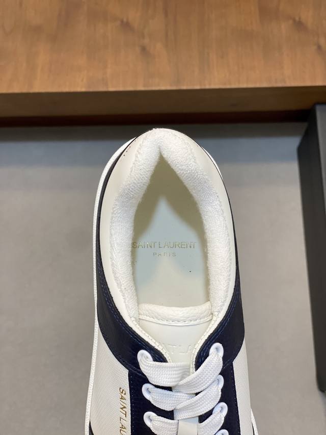 情侣款Saint Laurent圣罗兰低帮系带运动鞋 DDD S L61官网新款 品牌旗舰店同步、意大利原胚粒面牛皮+正面饰片点缀多孔皮革、拉环饰以金色Saint Laurent标志,侧面饰以Sl 61标志 后帮压印圣罗兰标志 内里Tw柔软毛巾布、更加增强鞋子的柔软性、透气性及包裹性、无中底套楦做法、加记忆脚床鞋垫!脚感更加无比舒适轻便 、环保防滑橡胶双色大底、大底周圈车真线 更加增强了整双鞋子的舒适度 牢固度 完美用细节说话 ! DDD 尺码:女款35-39 40.41定做 男款38-45!原盒包装+防